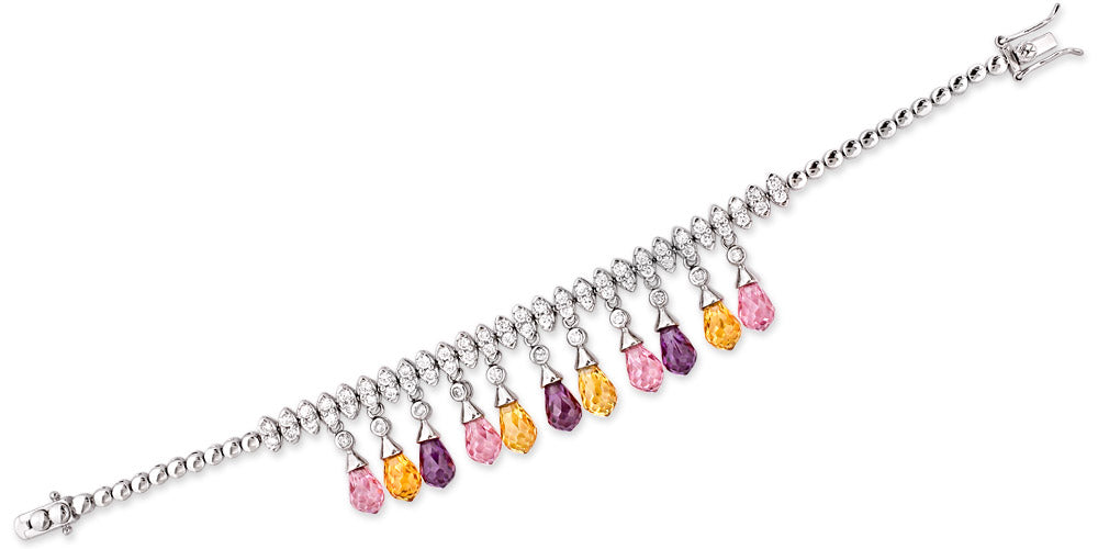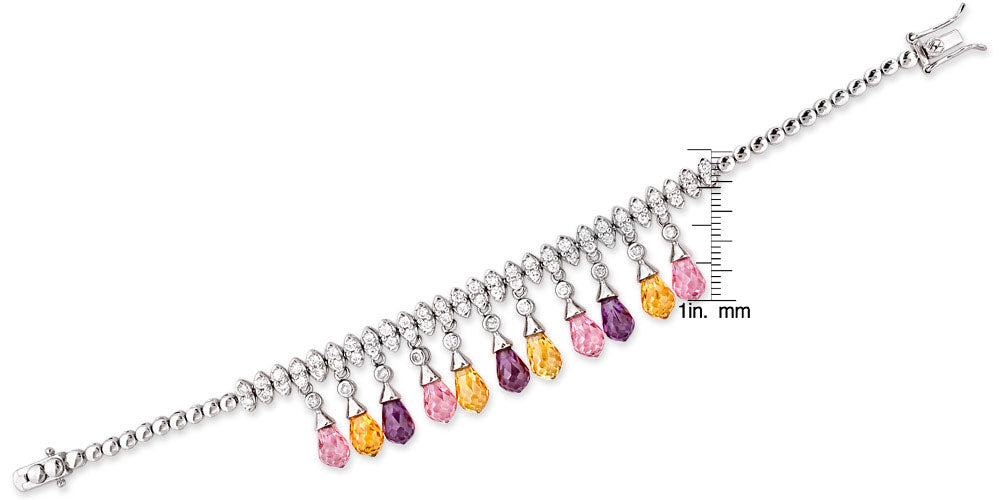 Cubic Zirconia Sterling Silver Rhodium Plated Multi Color Teardrop Last Pair Bracelet