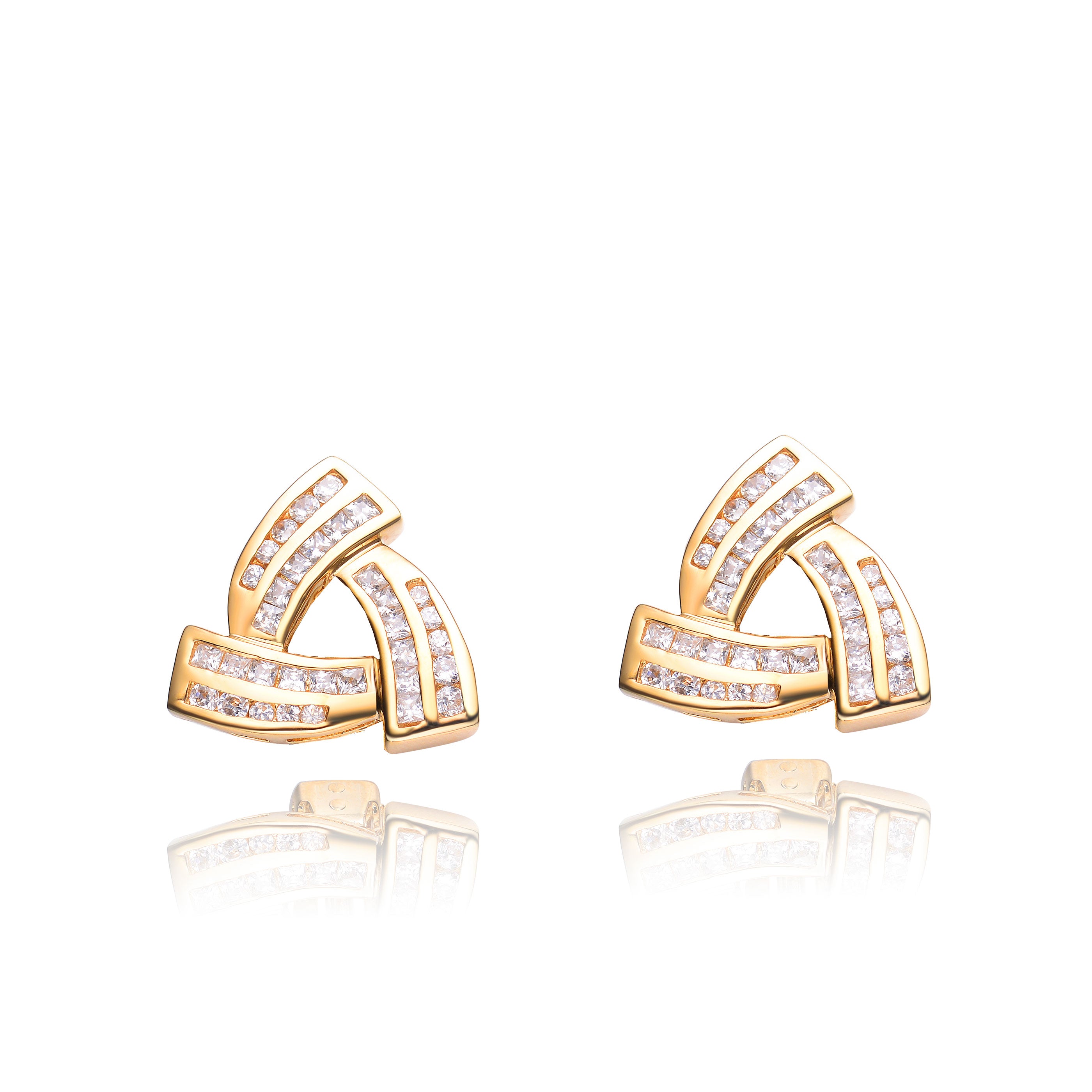 These neat triangle stud style earrings feature white round-cut cubic zirconia stone in prong setting. Crafted of .925 sterling silver, the earrings secure with butterfly clasps.