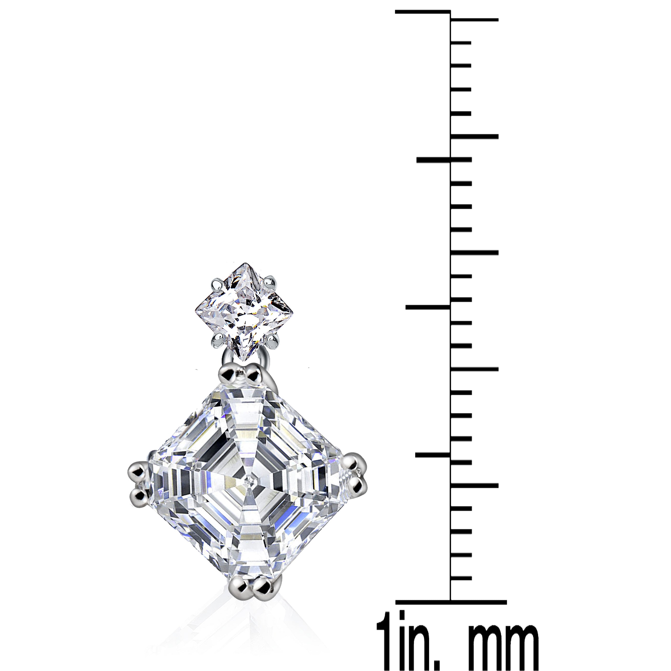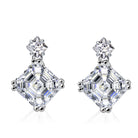 These fine earrings feature white dazzling asscher-cut cubic zirconia stones enhanced with smaller square-cut stones. Crafted of .925 sterling silver the earrings secure with butterfly clasps.