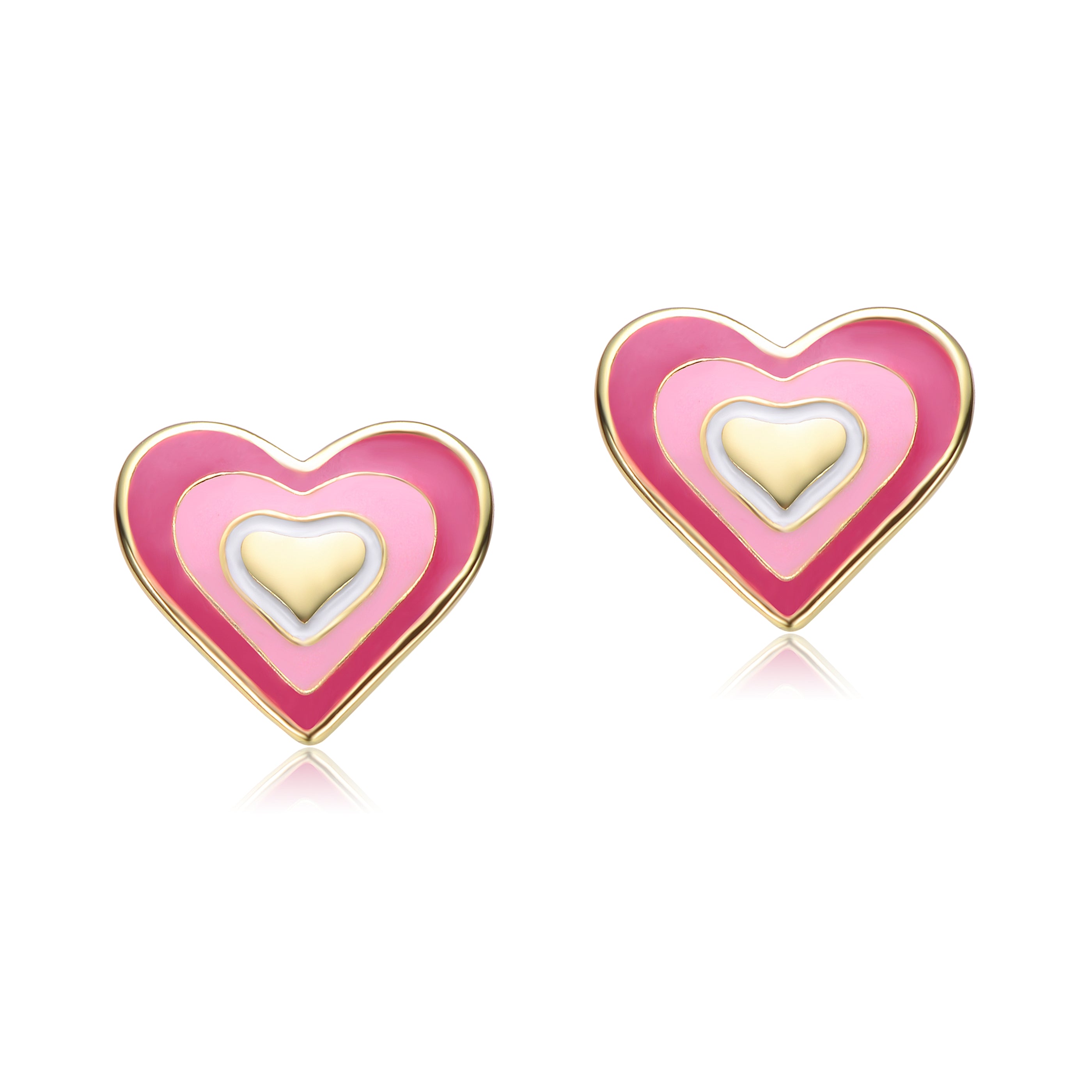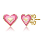 Sterling Silver 14k Gold Plated 8MM Pink & White Enamel Heart Stud Earrings