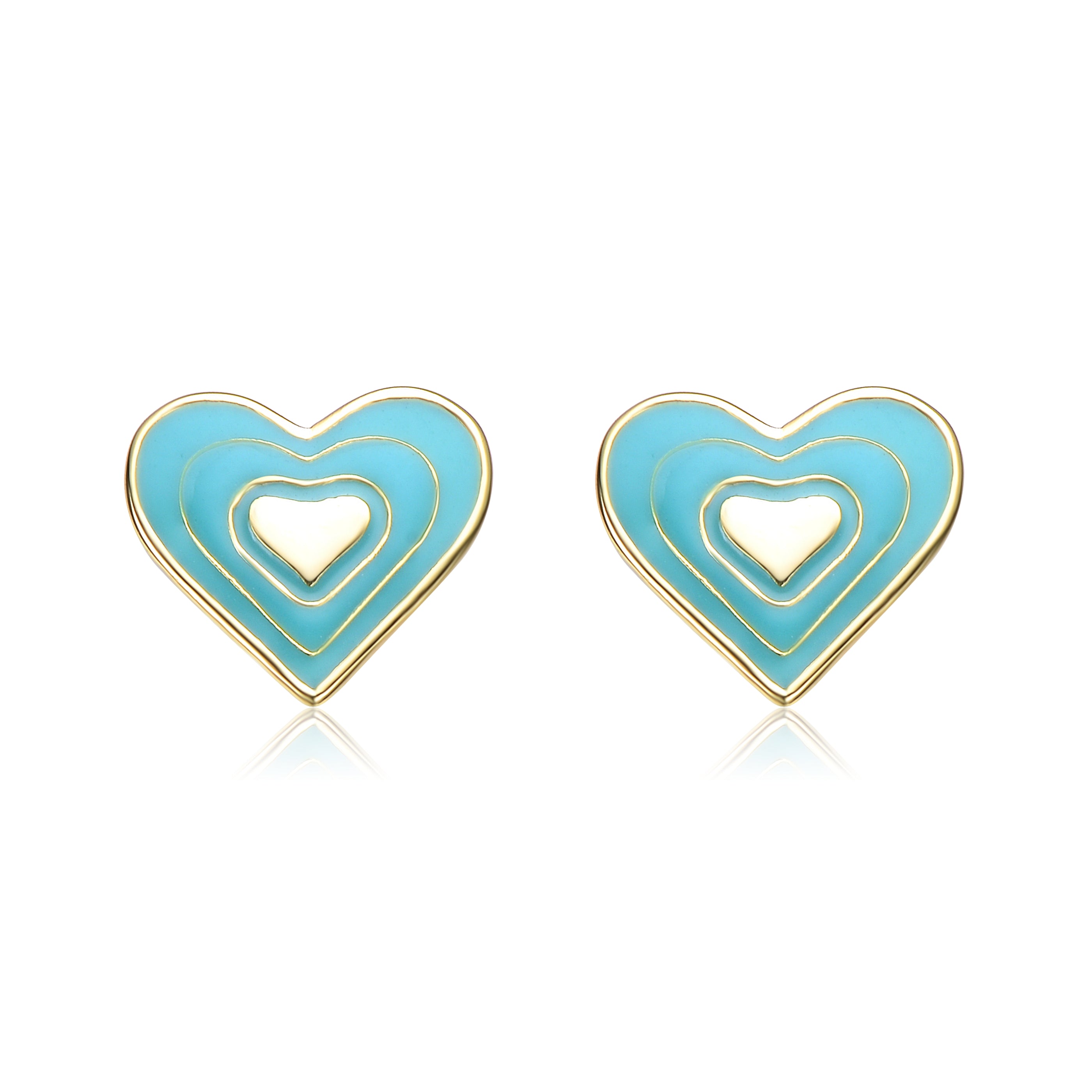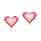 Sterling Silver 14k Gold Plated Pink & White Enamel Heart Stud Earrings. These super-cute 14k gold plated stud earrings feature adorable 8mm heart shapes with high-quality pink and white enamel. Hearts symbolize happiness, love, and affection, making these stud earrings perfect for gifting to any loved one. Butterfly backs keep these hearts secure, making them effortless to place on and remove from the ears when worn. Avaiable in pink or tiffany blue