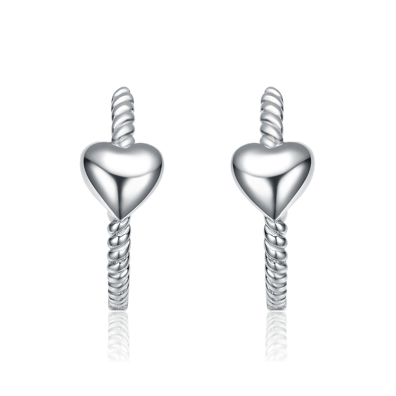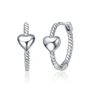 Romantic and refined, these heart design hoop earrings bring a graceful touch to any look. Crafted from sterling silver and finished with luminous white gold plating, the twisted hoop silhouette adds texture and dimension. A delicate dangling heart charm enhances their timeless appeal with subtle movement and charm. Lightweight yet durable, they are perfect for both everyday styling and special occasions. Elegant and versatile, these hoops make a thoughtful gift or a beautiful addition to your personal jewelry collection.