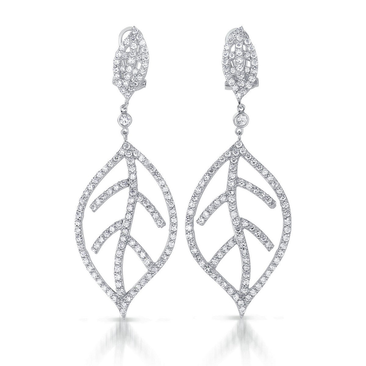 Classy .925 Sterling silver cubic zirconia leaf drop earrings. These earrings are a fun addition to any collection. Each piece is carefully constructed with clear round cubic zirconia stones paved on the metal frame. Crafted of .925 Sterling silver with rhodium plating and secure with butterfly closure.