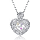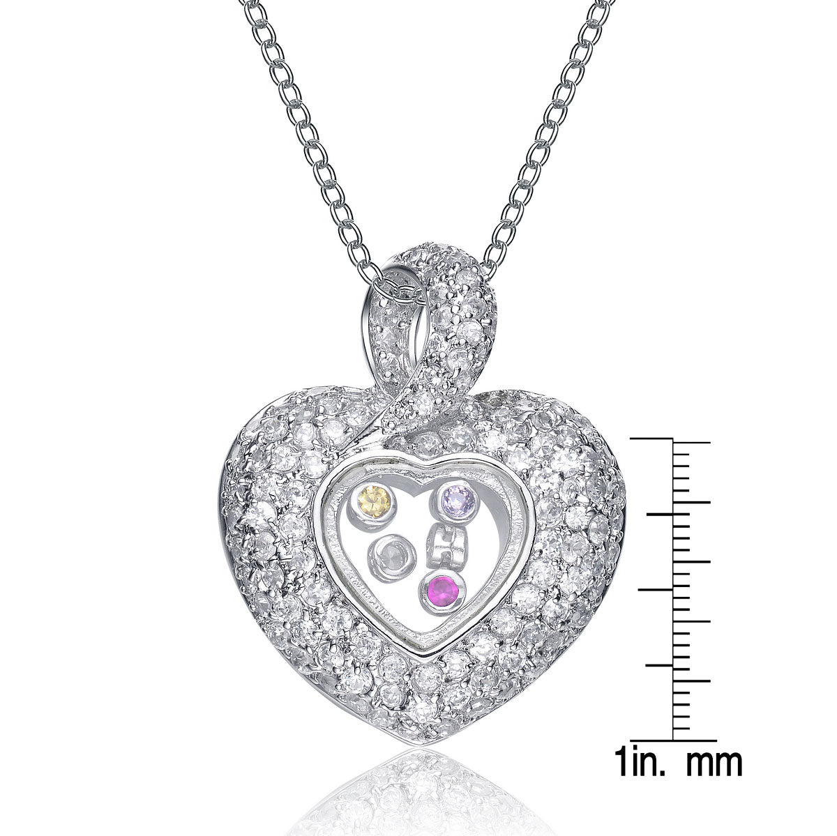 Don’t look any further for the prettiest heart necklace. This one displays an open heart encrusted with clear cubic zirconia stones and sprinkled with multicolored cubic zirconias at the core.