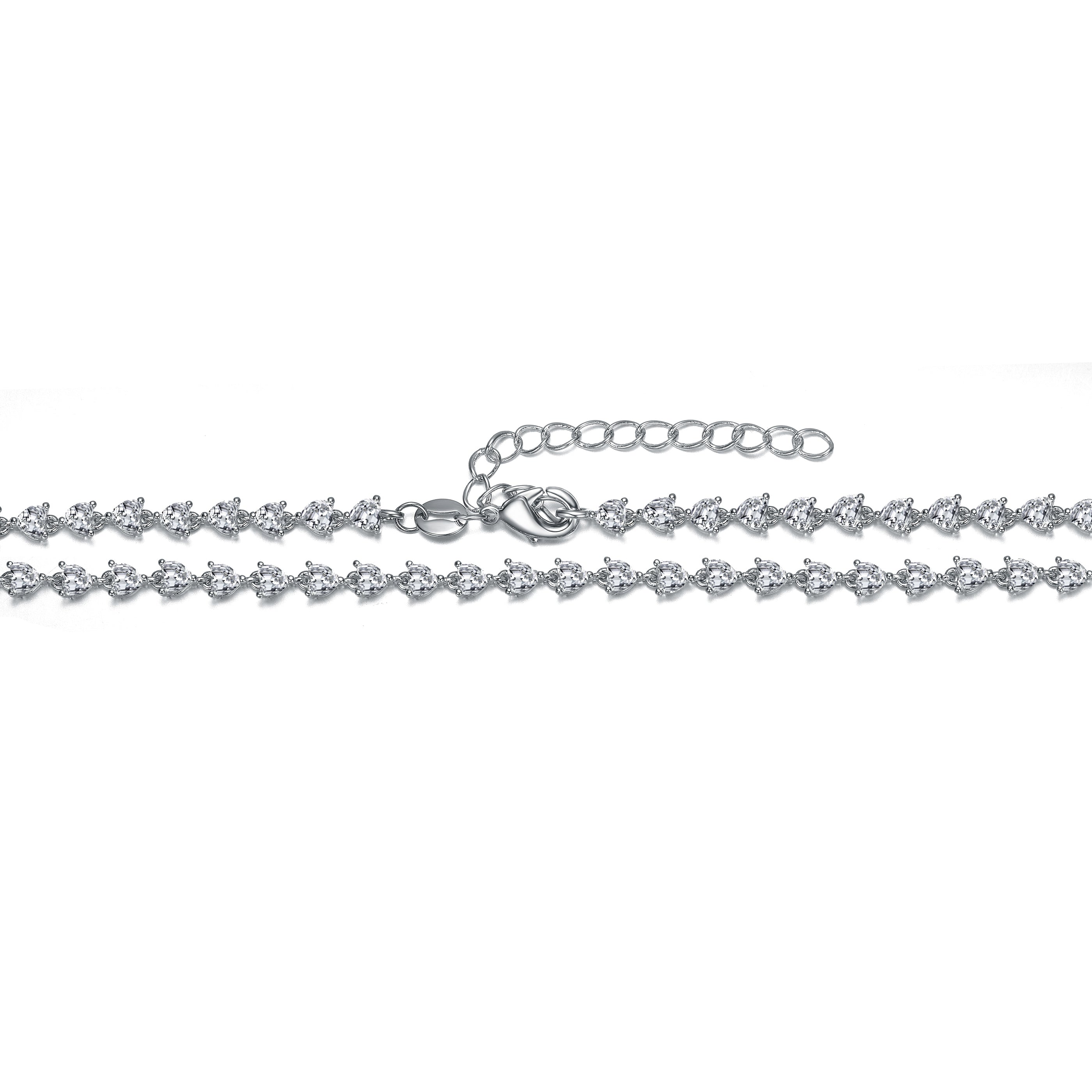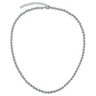 Adorn yourself with elegance and sophistication with our White Gold Plated Heart Tennis Necklace. Featuring 3*3mm heart-shaped cubic zirconia stones, each securely held in a 3-prong setting, this necklace promises both sparkle and durability. The distinctive design includes delicate links interspersed between each heart, adding a touch of grace to the overall look. With a 16-inch length and a 2-inch extender, complete with a lobster clasp, this piece offers both versatility and secure wear. Perfect for any occasion, it makes for a refined addition to your jewelry collection.