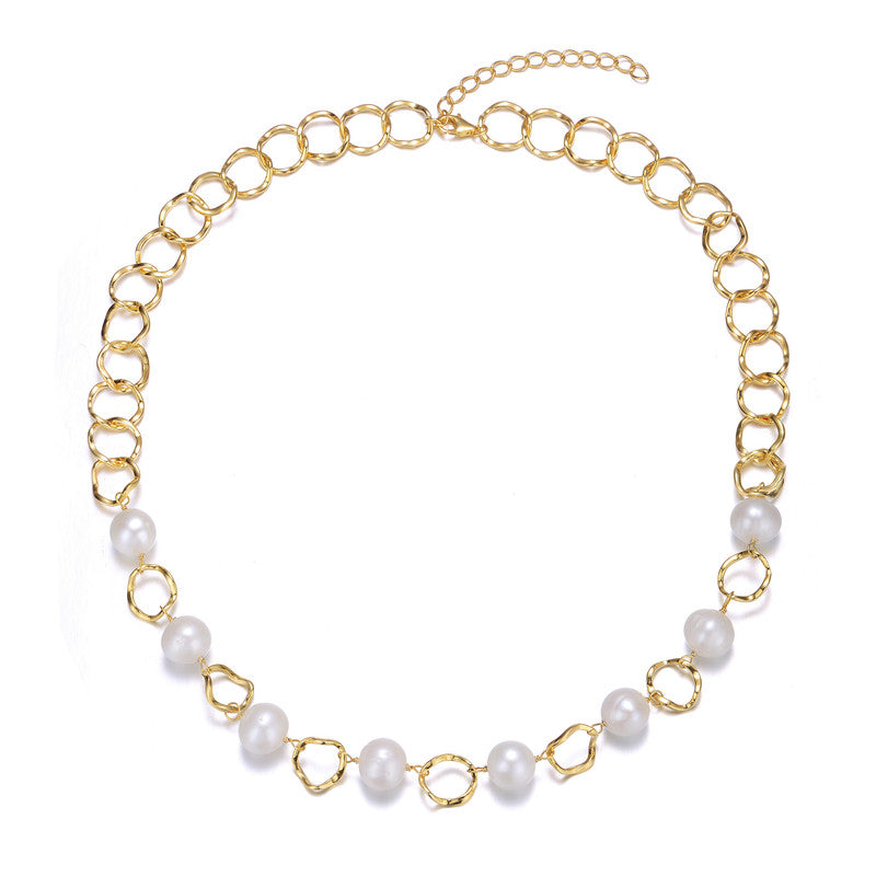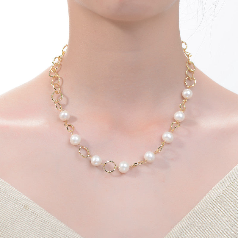 This refined gold-plated sterling silver necklace features a luminous freshwater pearl centerpiece that offers timeless elegance. Designed for effortless layering or standalone wear, it delivers a polished and sophisticated look. A versatile piece that enhances both everyday styling and special occasion outfits.