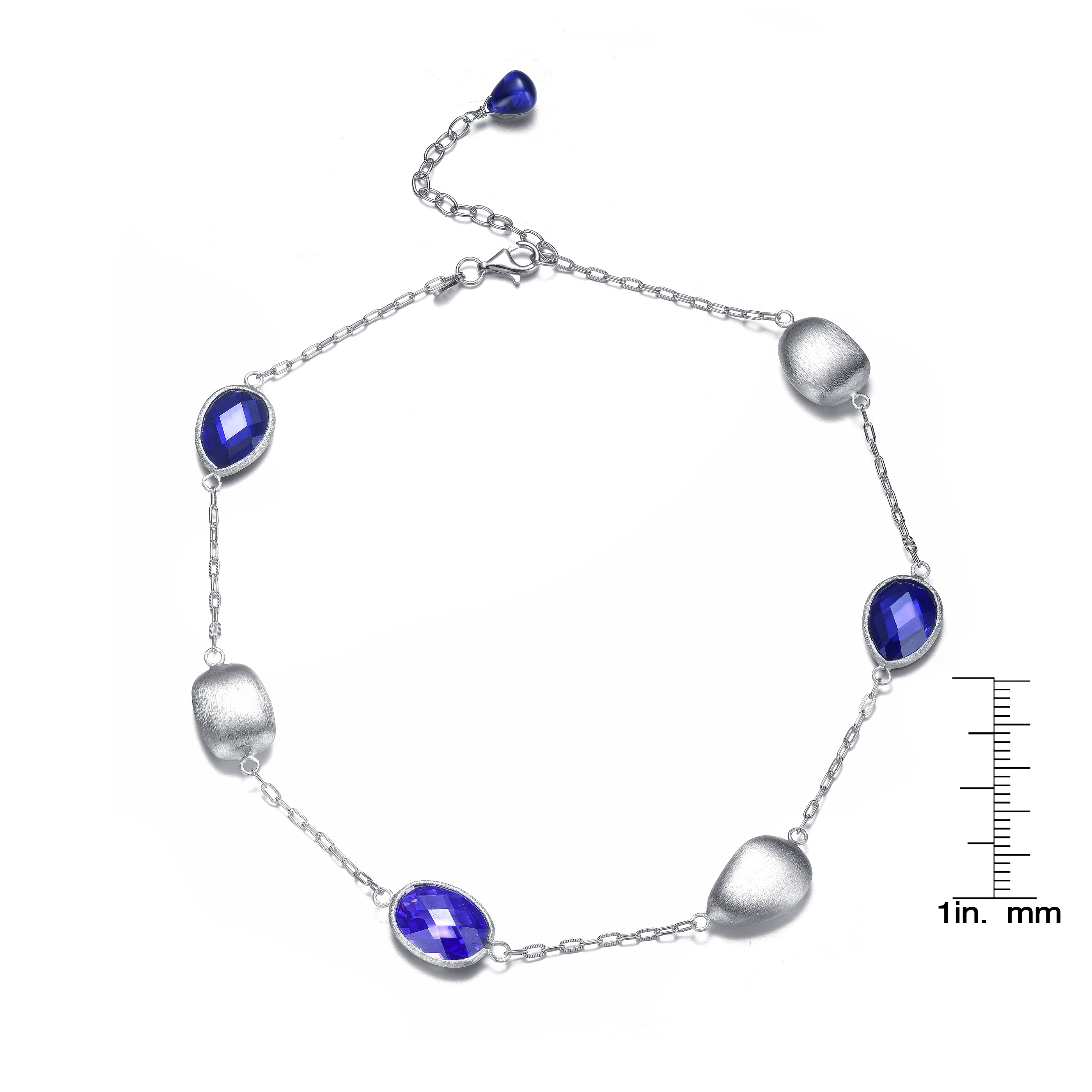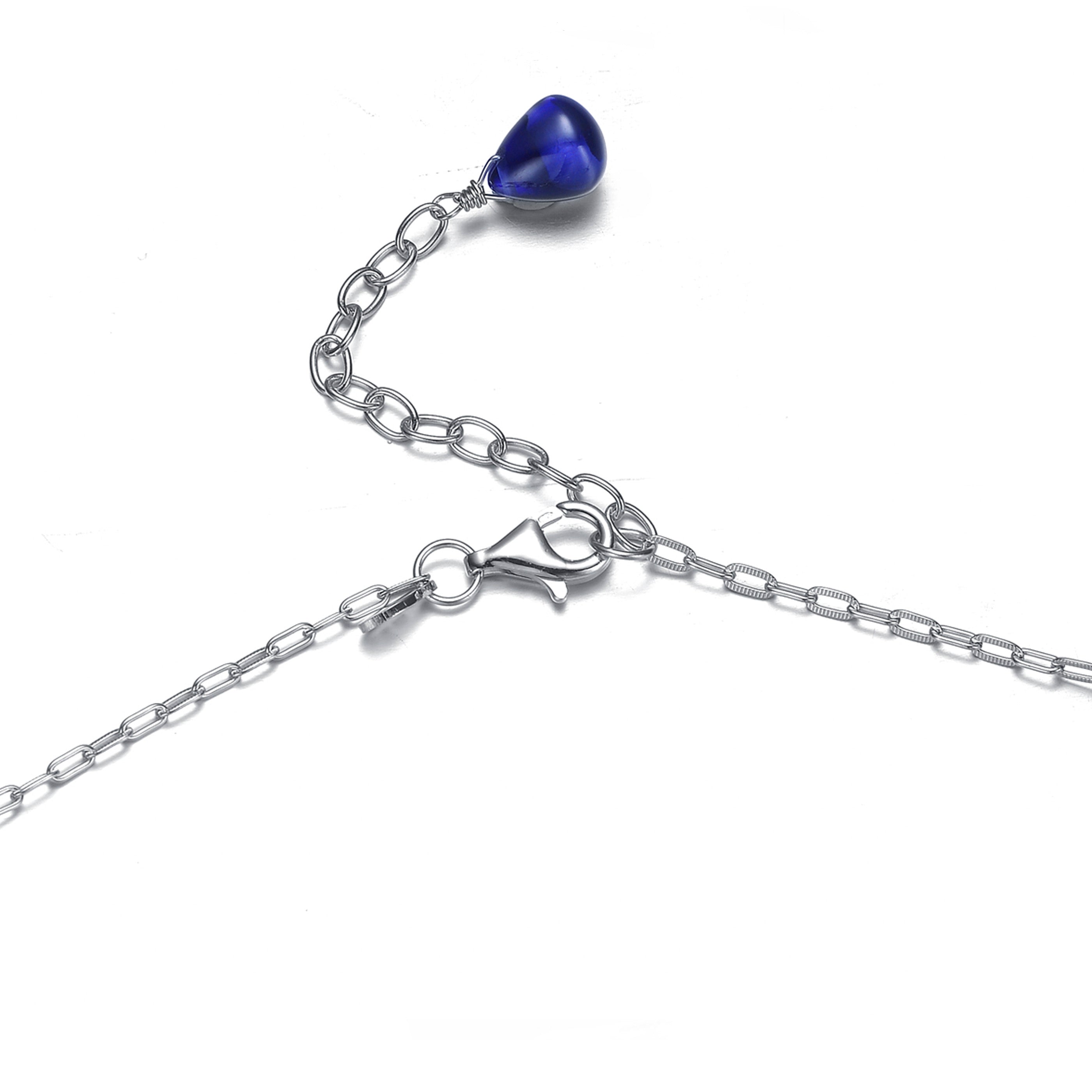 This splendid necklace alternates between tiny sterling silver balls and blue cubic zirconia stones to provide a subtle and dainty style that still sets it apart from the crowd.