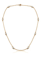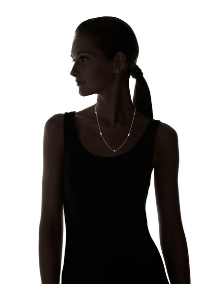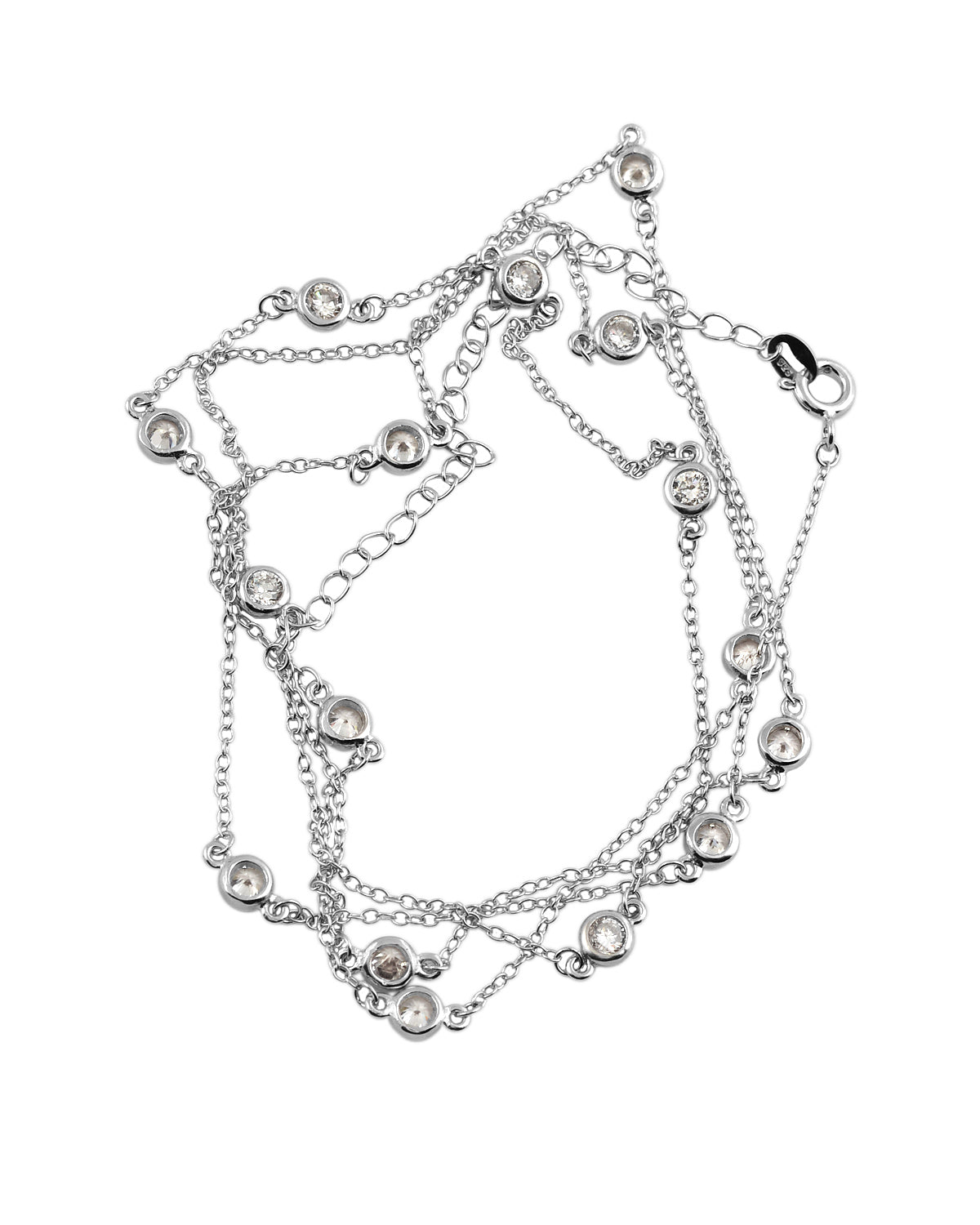 This sterling silver necklace is great for daytime looks. Mini halos of clear cubic zirconias are evenly spaced for an effortless look.Β