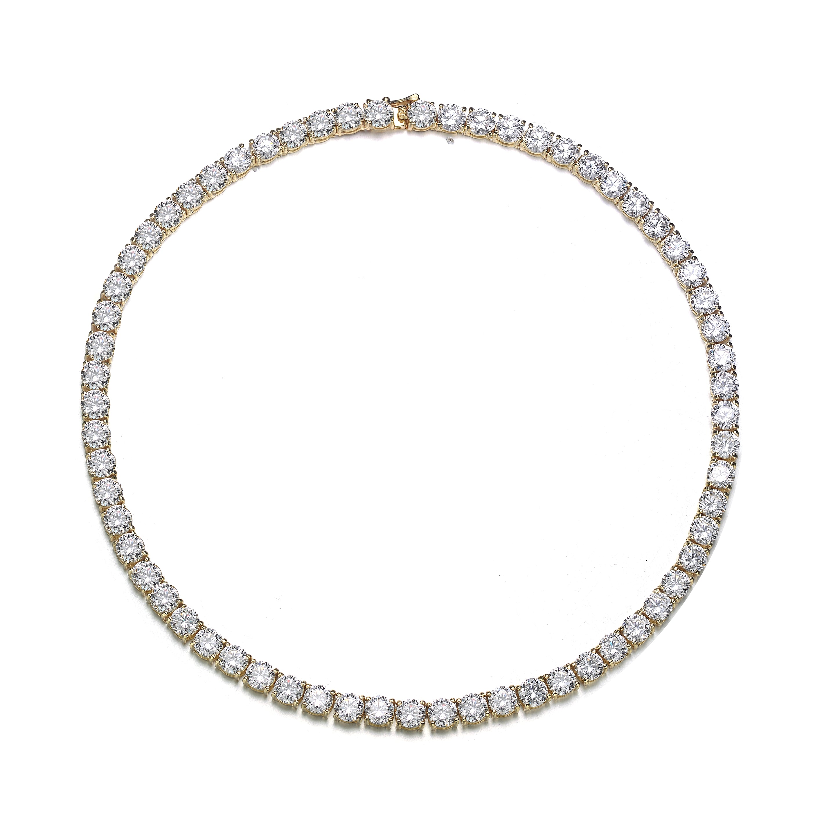 Stunning And Elegant 14K Yellow Gold Plated Over Sterling Silver Cubic Zirconia 6MM Tennis Necklace