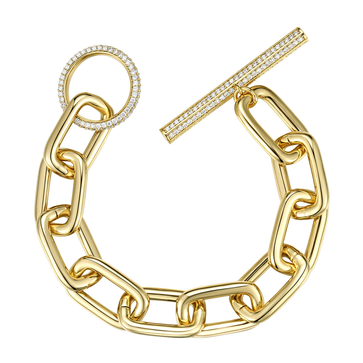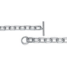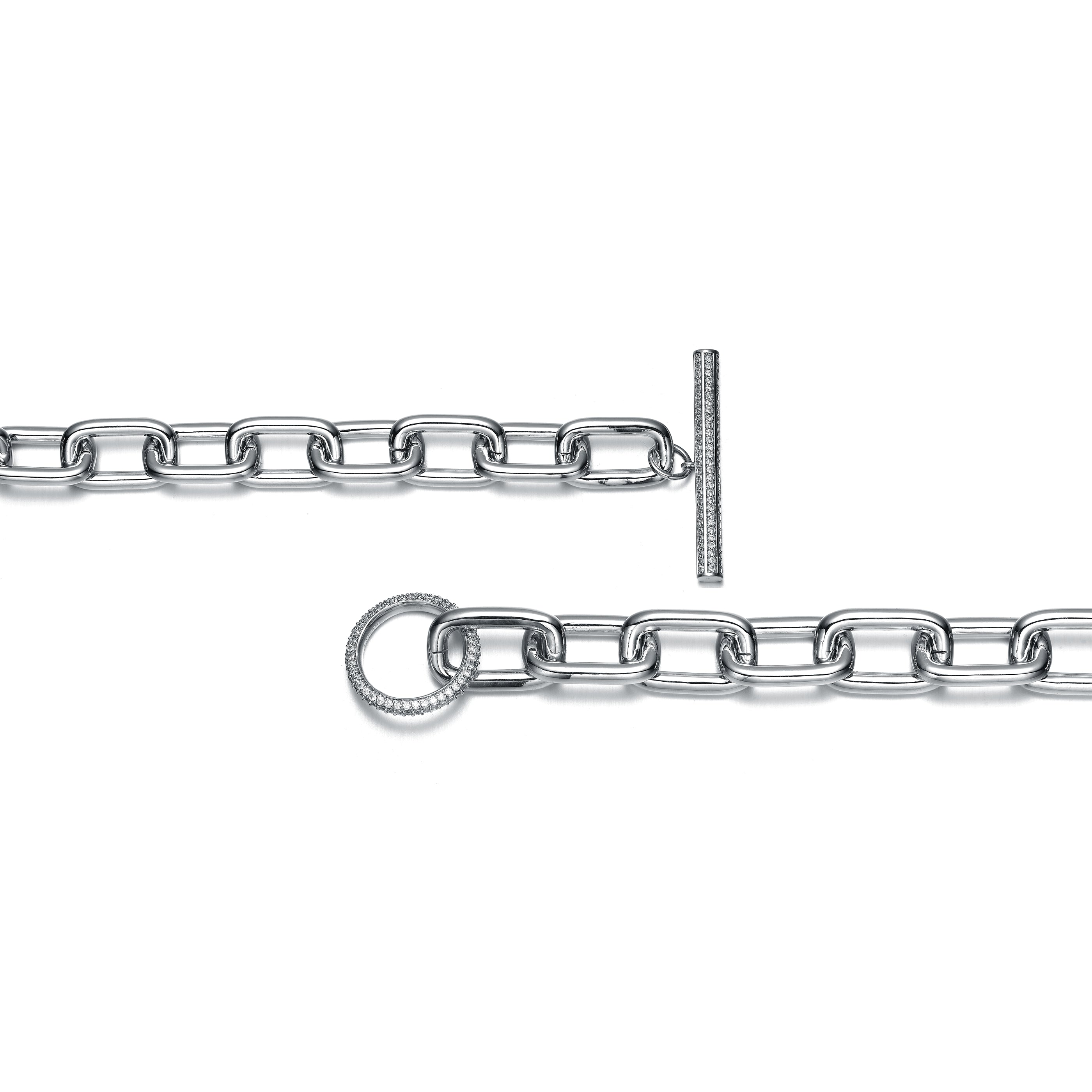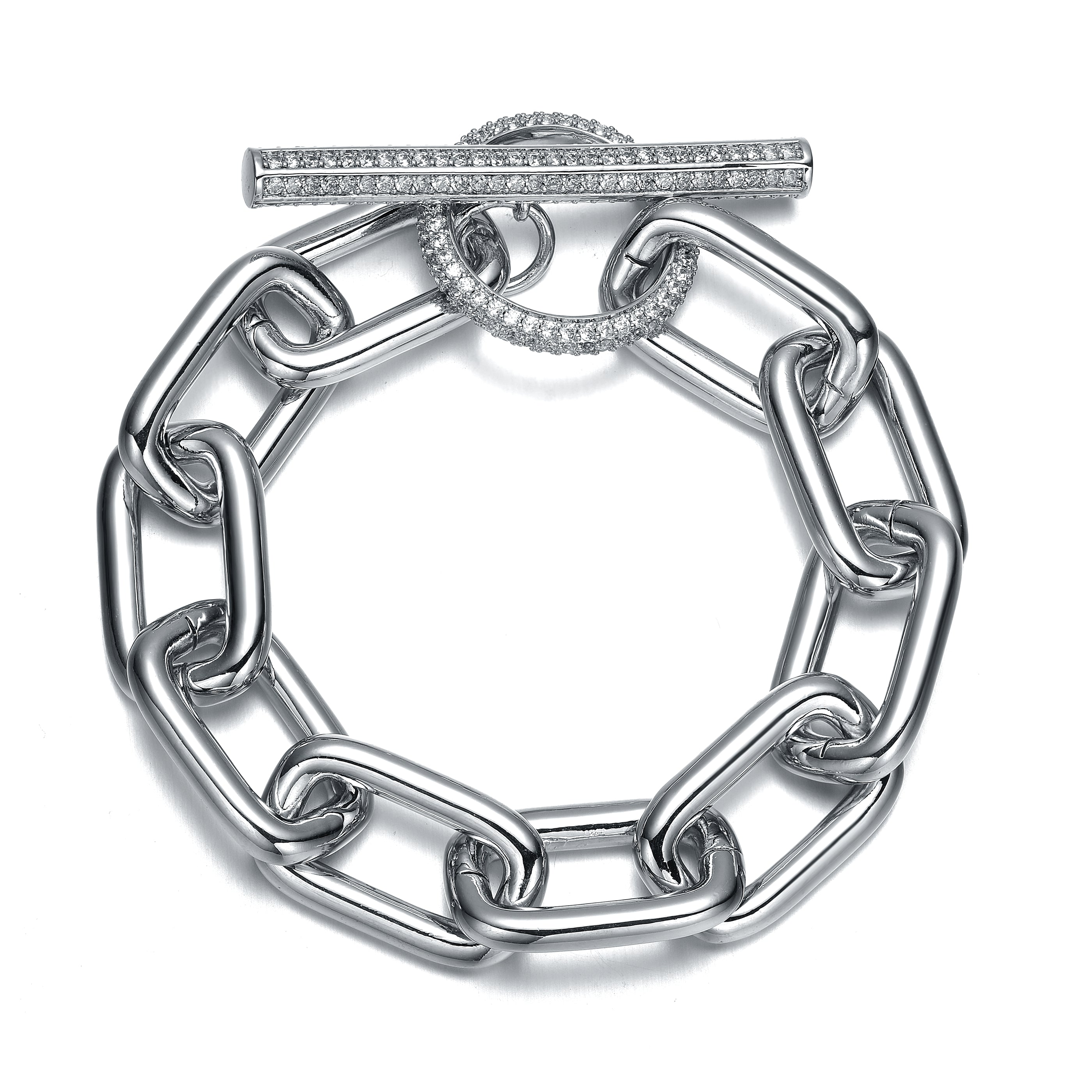 Refresh your bracelet layering collection with this oval cable link bracelet featuring slim links with smooth edges for a modern appeal, perfect for wearing frequently. Sparkling round brilliant cut cubic zirconias French pave set on the toggle clasp gives this bracelet added glamor, all crafted from White Gold plated sterling silver with a rich shine.