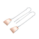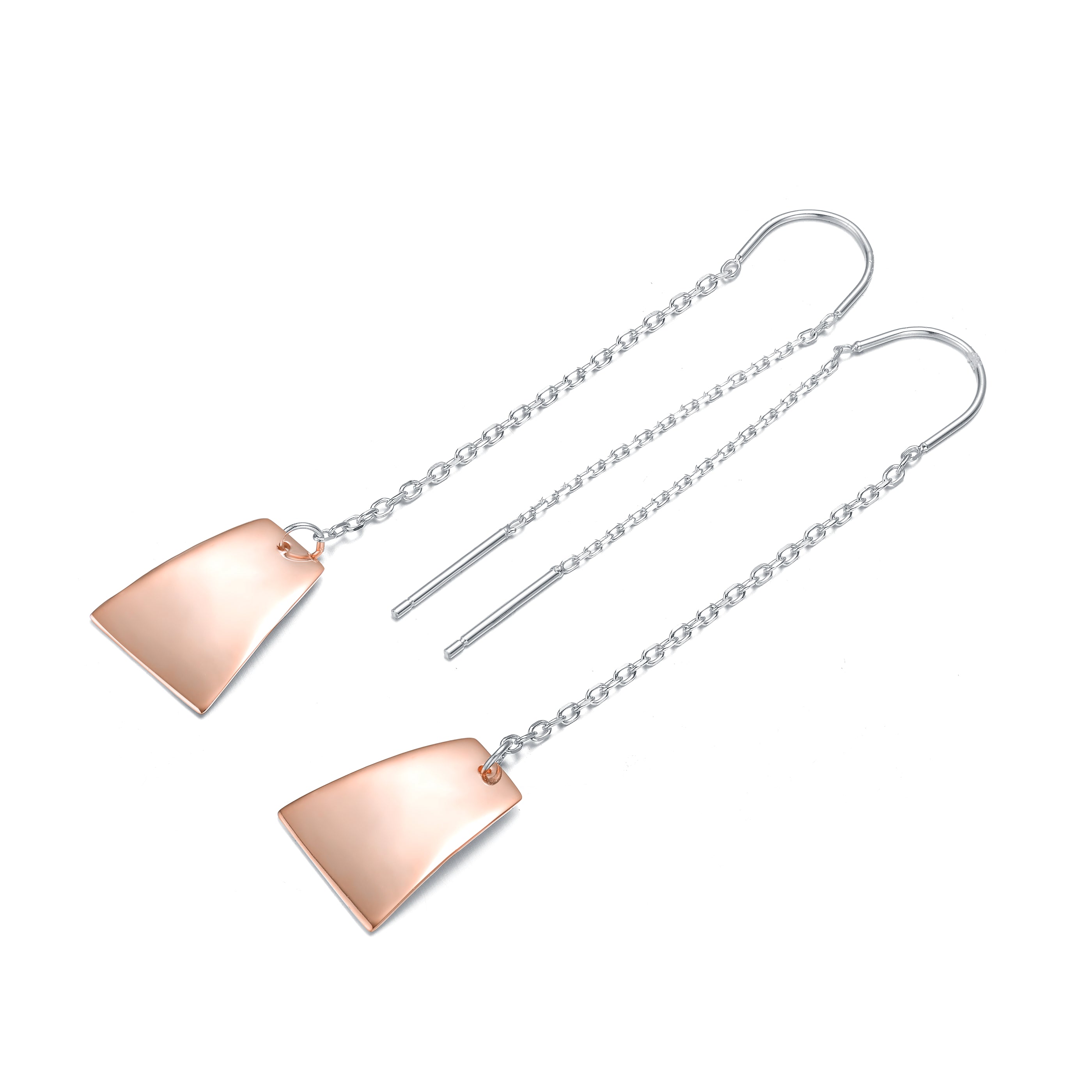 These dangling earrings feature graceful movement and modern simplicity. Rose gold plated elements drop elegantly from sterling silver hooks. The elongated silhouette adds sophistication without heaviness. Crafted in sterling silver, they maintain durability and shine. Easy hook-style design allows effortless wear. A refined accessory perfect for casual elegance.