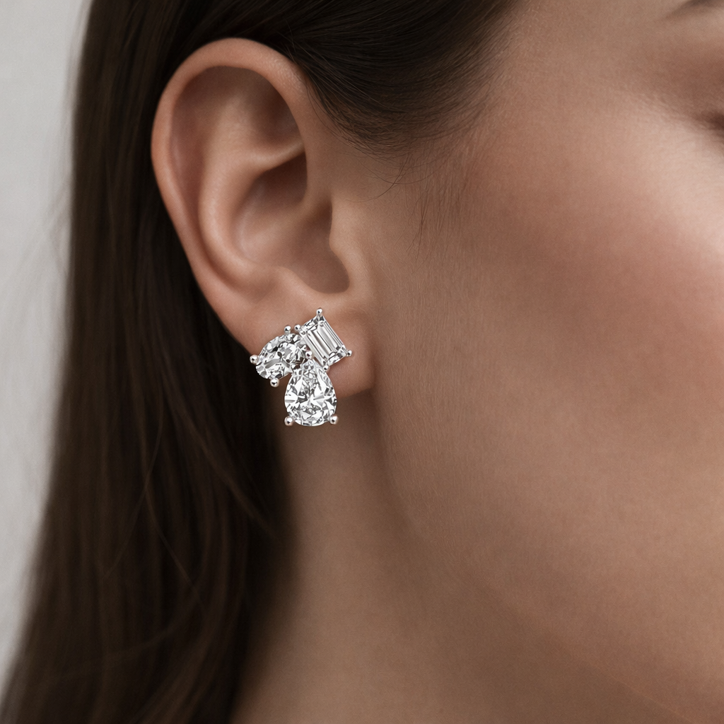 Estelle Three-Stone Cluster Stud Earrings.