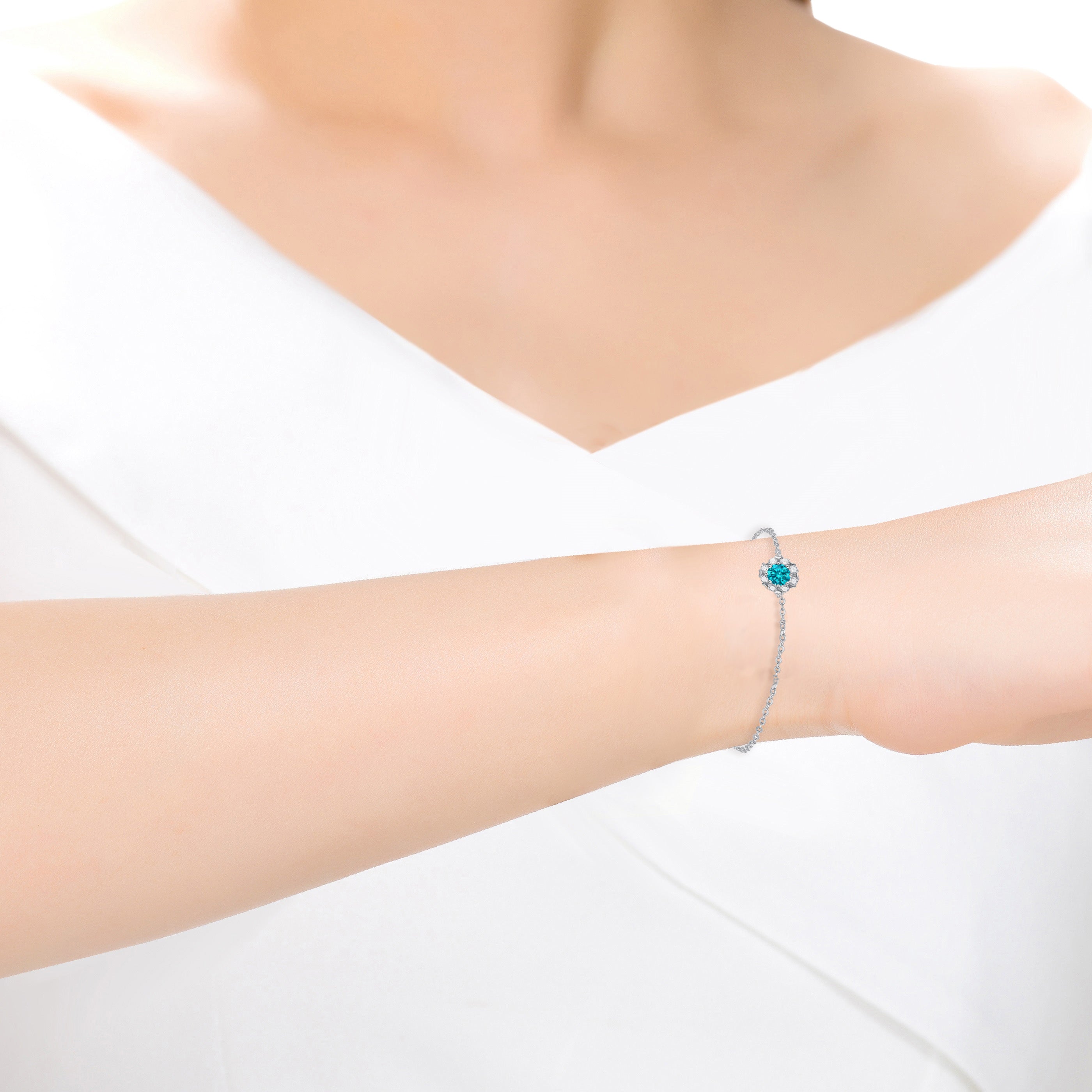 Helène Moissanite & Blue Topaz Round Halo Stud Earrings