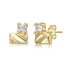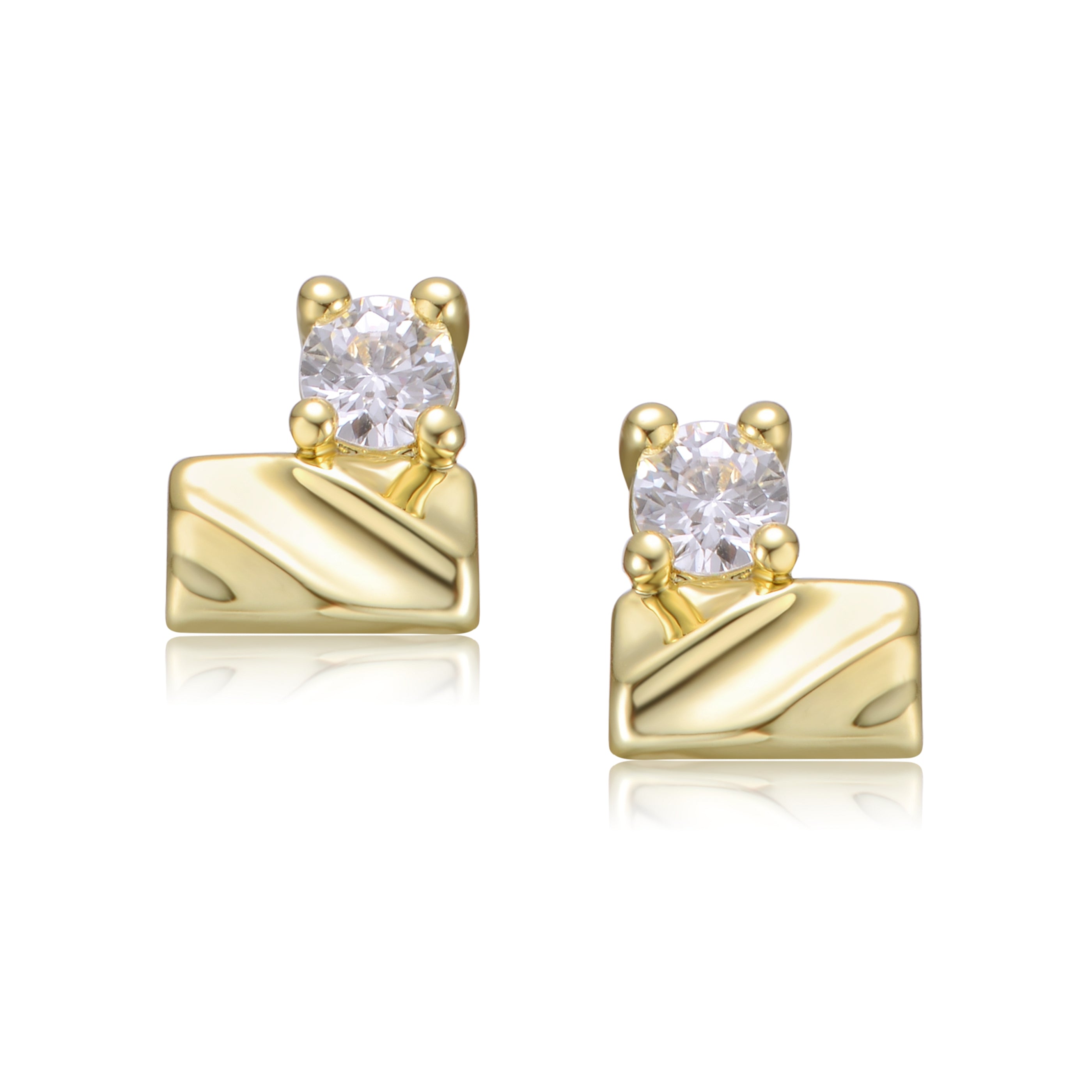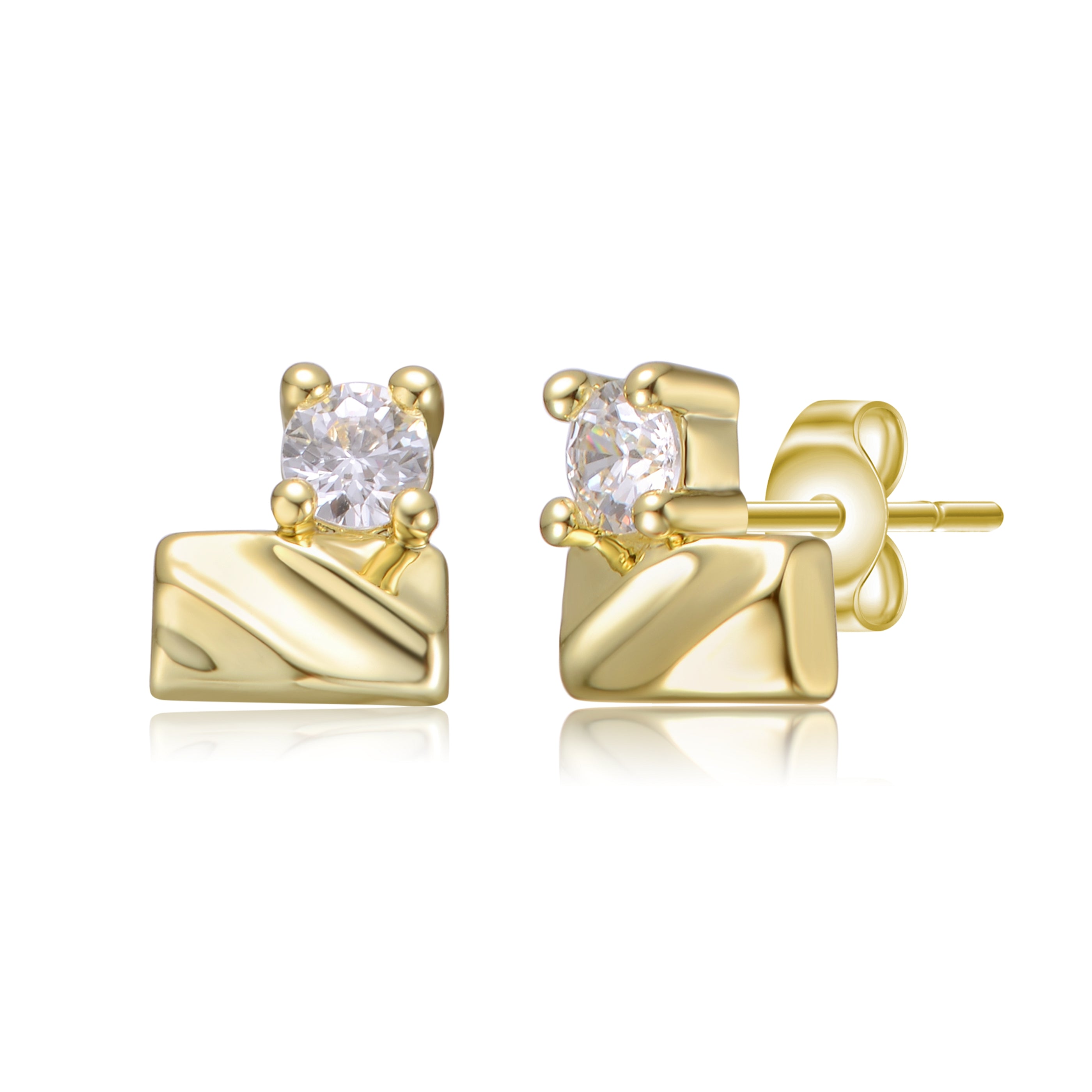 Enhance your style with these sterling silver stud earrings, 14K Gold Plated. Featuring clear moissanite stones set in a sleek rectangular design, they combine the luxury of gold with the brilliance of moissanite. Perfect for adding a touch of elegance to any outfit.
