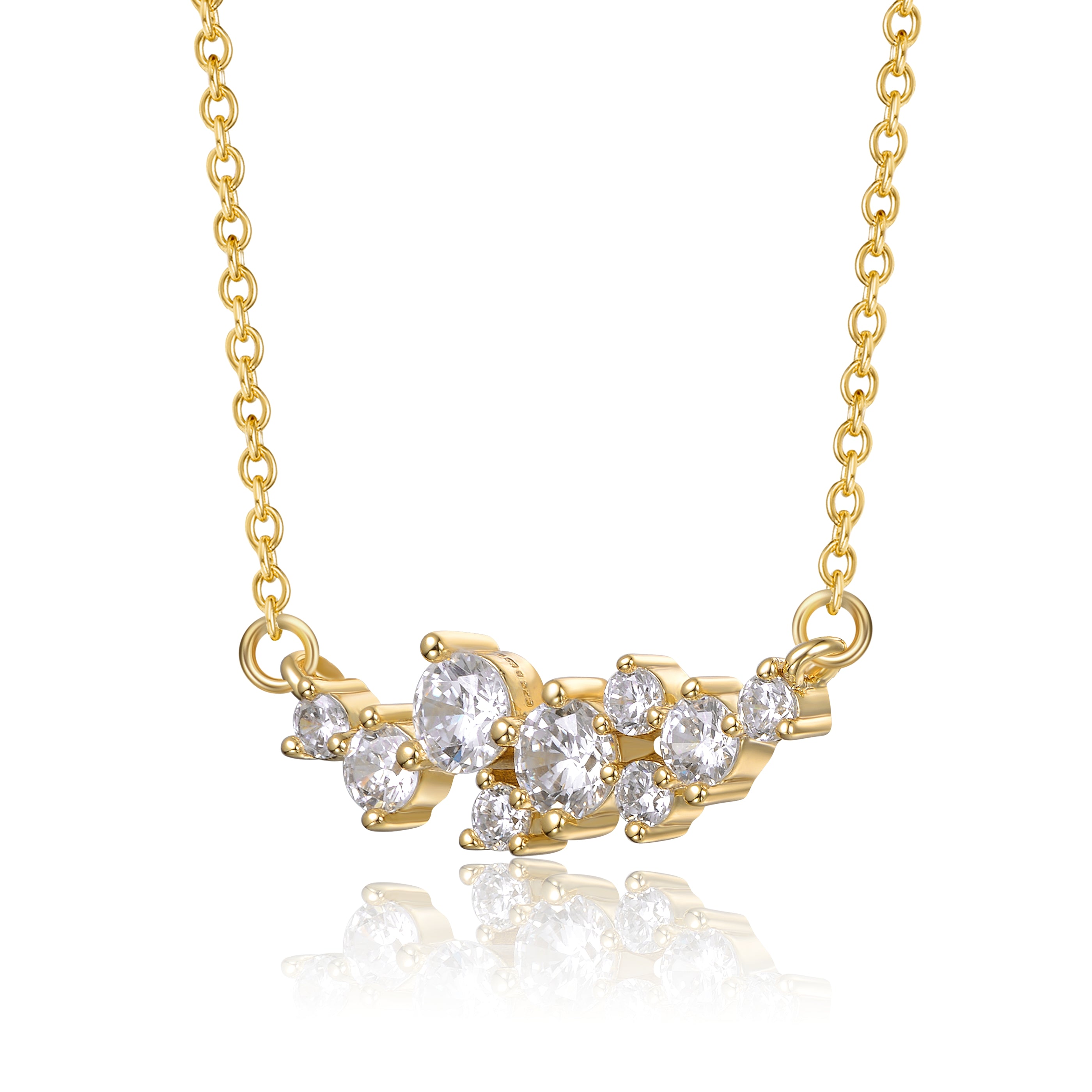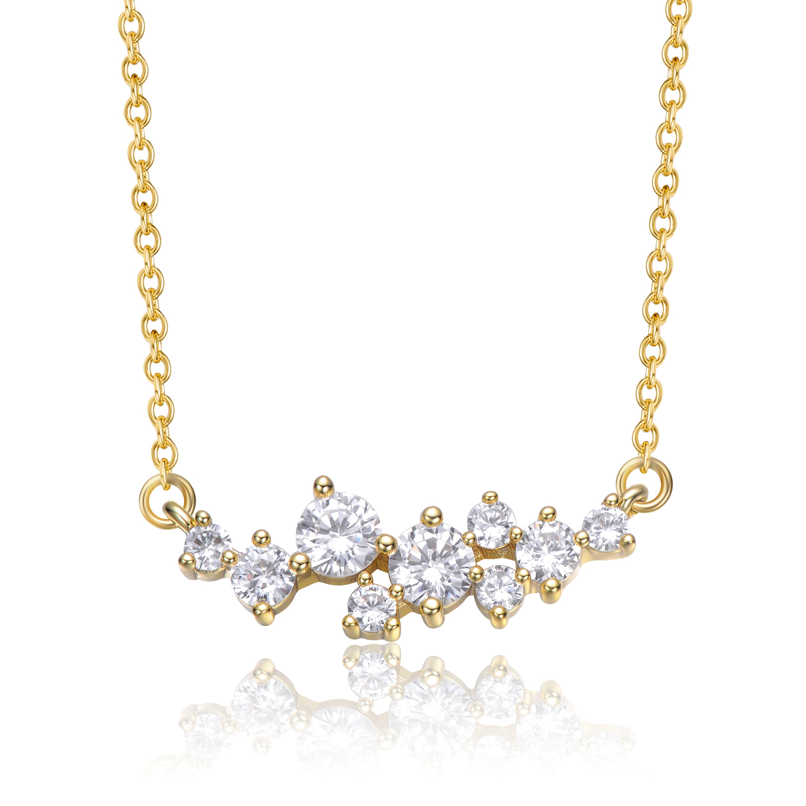 Elevate your elegance with this sterling silver necklace, 14K Gold Plated. Featuring a sleek rectangular pendant adorned with clear moissanite, it shines brilliantly and adds a touch of sophistication to any outfit. Perfect for both everyday wear and special occasions.