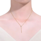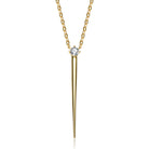 Sterling Silver 14k Yellow Gold Plated 0.10ct Lab Created Moissanite Gothic Spike Pendant Layering Necklace. Make a statement in modern glamor with this gorgeous sterling silver 14k yellow gold plated pendant necklace, made to get noticed and perfect for adding to your unique layering necklace collection. A 0.10ct round brilliant cut lab created moissanite prong set on the top of the spike glitters from all angles and has VVS1 clarity and D color. A durable rolo link chain closes with a lobster clasp.