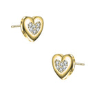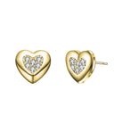 Sterling Silver 14k Yellow Gold Plated with 0.18ctw Lab Created Moissanite Pave Heart Stud Earrings. Celebrate your everlasting love with these enchanting 14k yellow gold plated sterling silver heart earrings featuring 0.18ctw of round brilliant cut lab created moissanites pave set in the center and have VVS1 clarity and D color. Butterfly backs keep these sweet earrings secure, making them perfect for wearing at any time. Honor your true feelings with a heartfelt give to any loved one.
