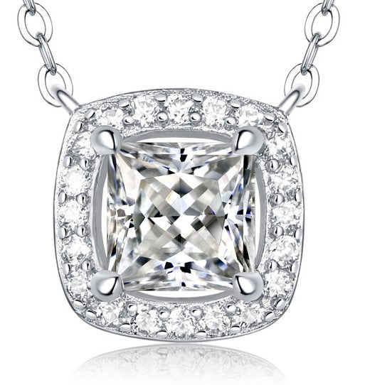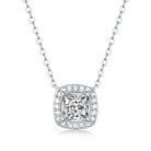 Sterling Silver 1ct Princess Lab-Grown Moissanite Cushion Halo Necklace