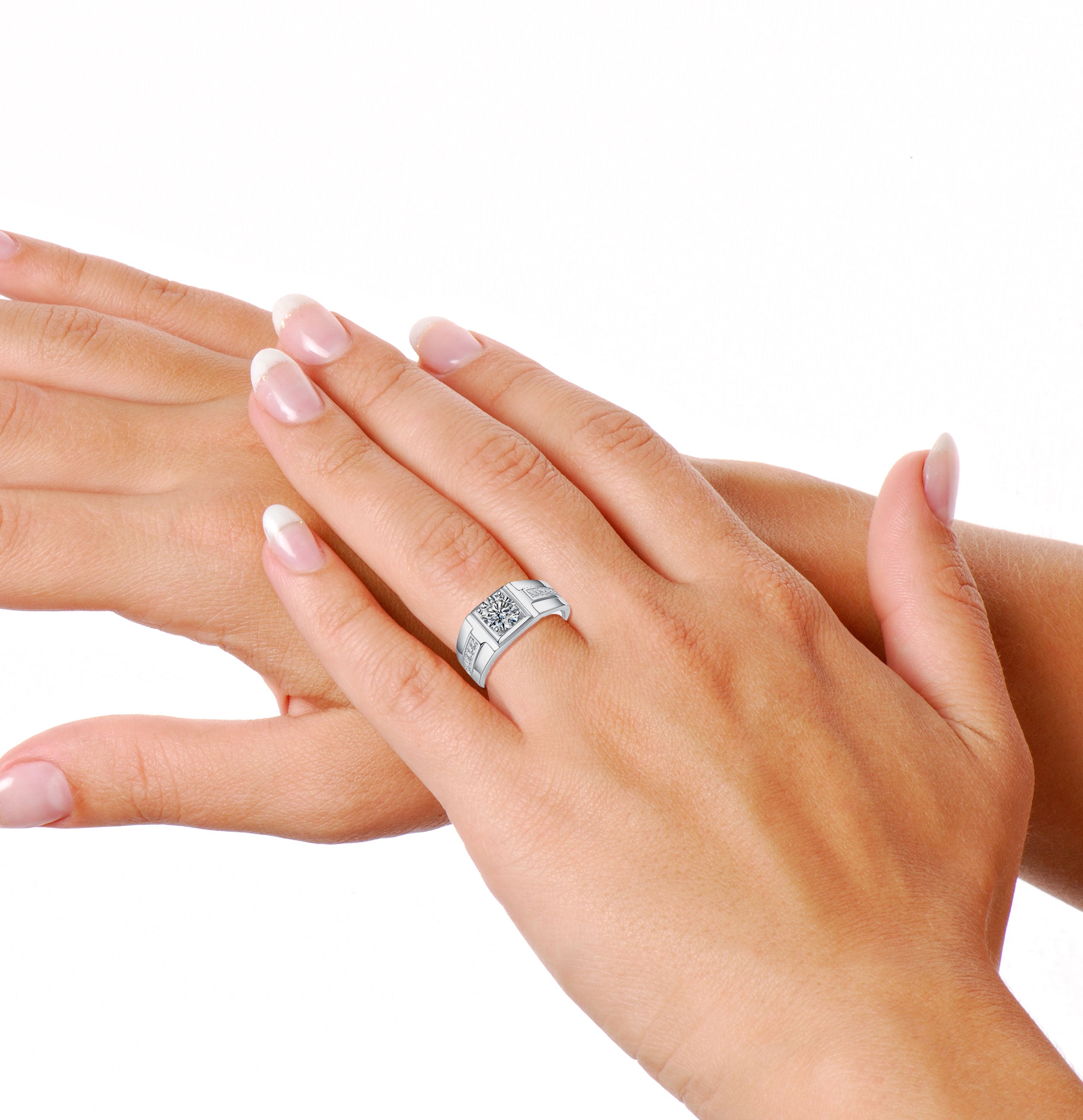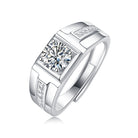 Sterling Silver 1ctw Princess Cut Lab Created Moissanite Solitaire Pave Trim Engagement Anniversary Adjustable Ring. Gift your significant other or yourself this stunning sterling silver adjustable engagement ring featuring a princess cut lab created moissanite flush bezel set in the center. Sparkling round brilliant cut lab created moissanites pave-prong set trim each side of this beveled ring for a total weight of 1ctw. These moissanites have an overall VVS1 clarity and D color, making this glam ring perfect for any occasion.