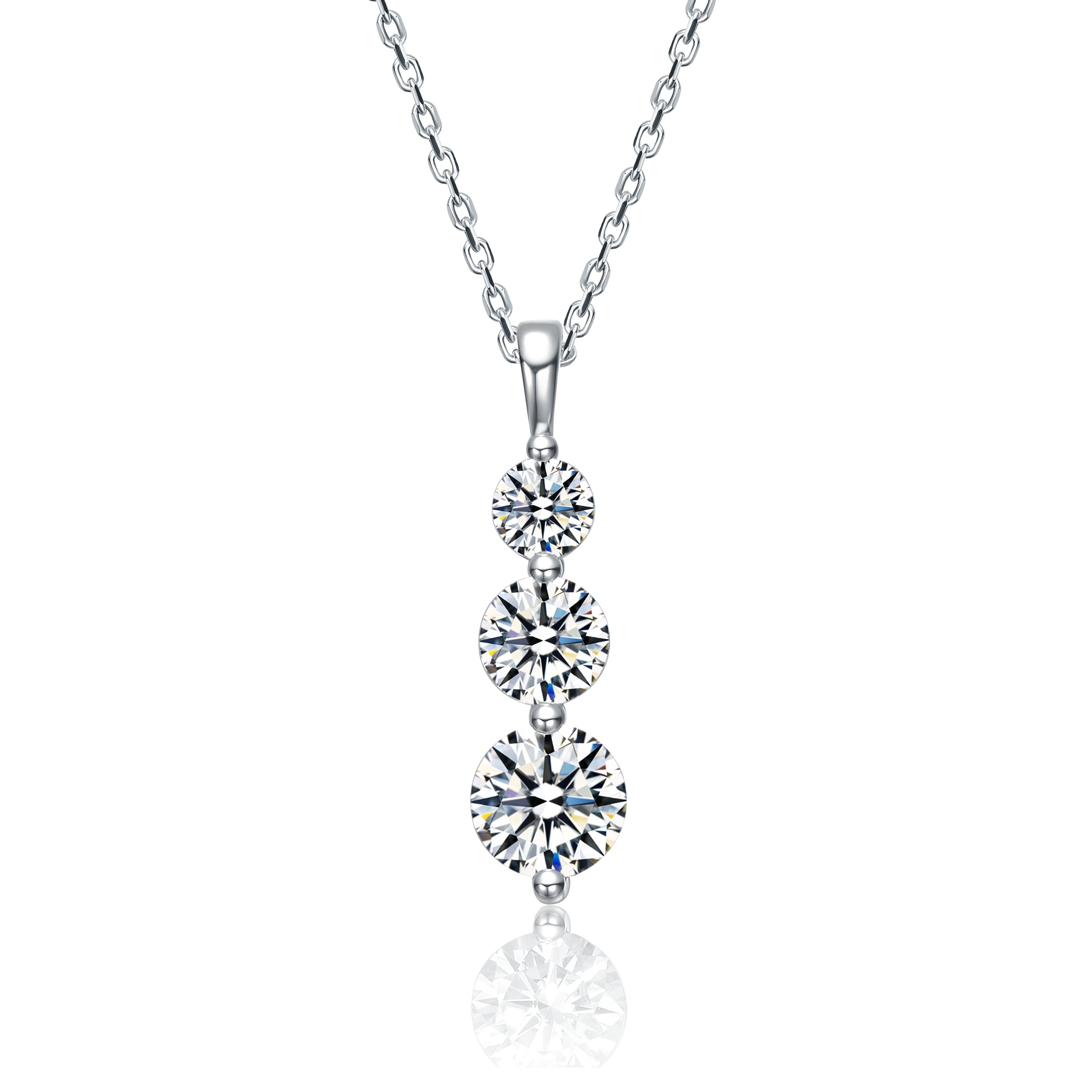 Sterling Silver White Gold Plated with 1.50ct Lab Created Moissanite Three-Stone Anniversary Necklace