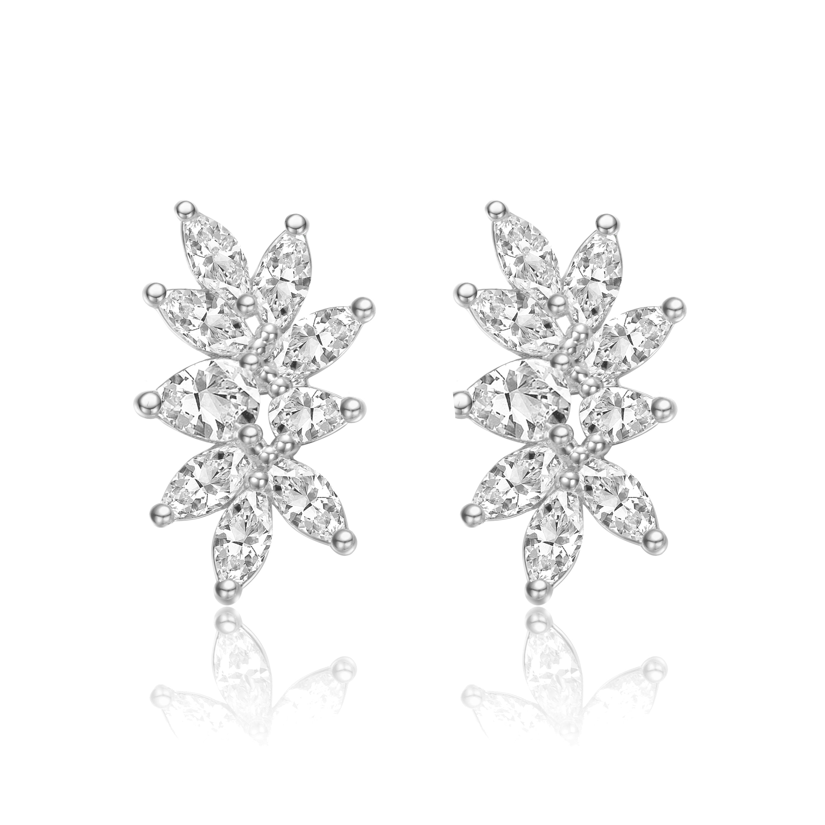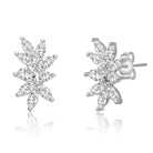 Sterling Silver White Gold Plated with Lab Created Moissanite Leaf Garden Cluster Stud Earrings. Make romantic memories last this holiday and beyond with these sterling silver white gold plated stud earrings, featuring pear and marquise lab created moissanite secured in classic prong settings, giving these studs a stunning display of fire and elegance in a beautiful leaf garden cluster. Post backs keep these earrings secure, making them perfect for complementing your day or night wardrobe with glamor.