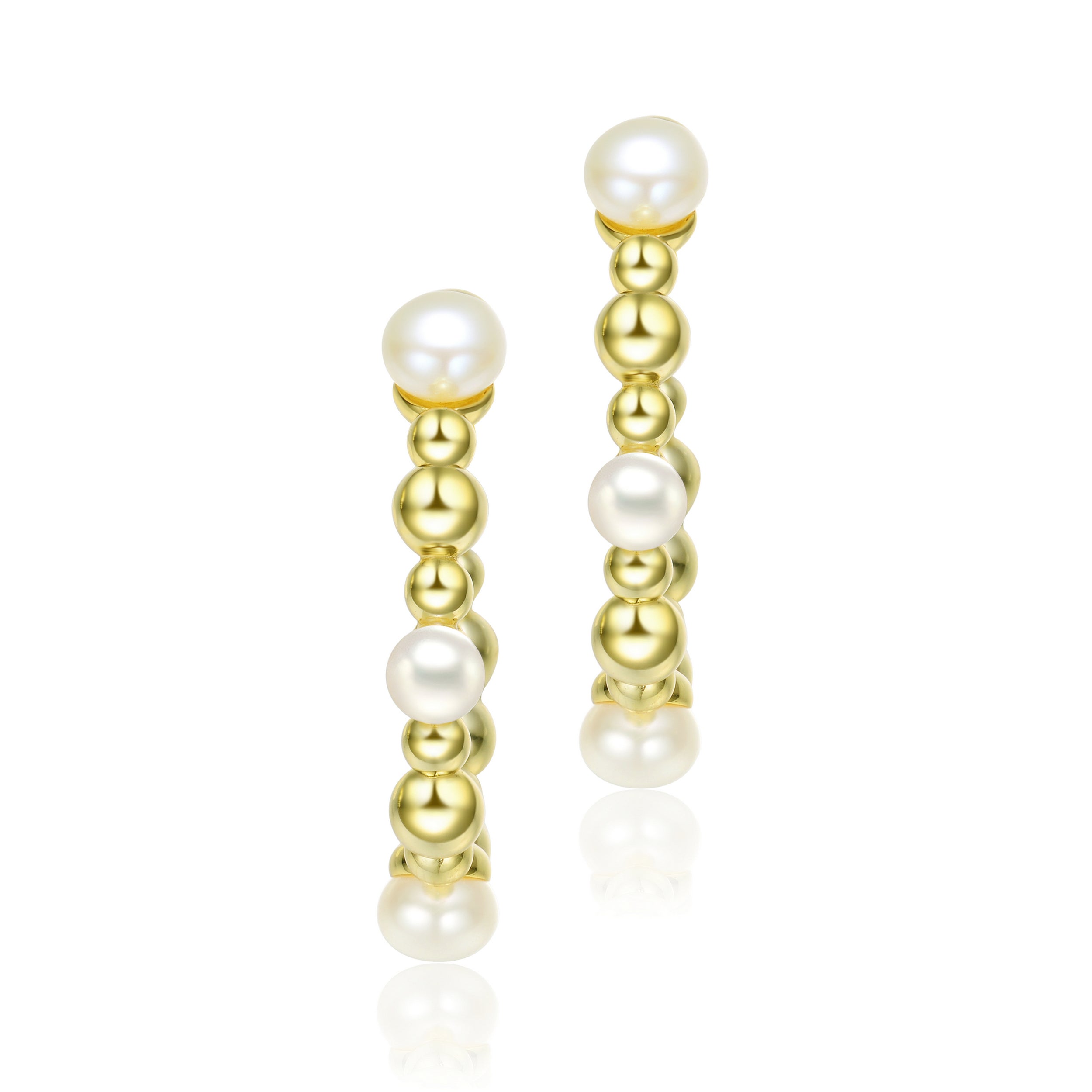 Elevate your style with Sterling Silver 14K Gold Plated Hoop Earrings, featuring 5mm Freshwater Pearls. These classic earrings exude sophistication for any occasion, showcasing timeless beauty and grace.