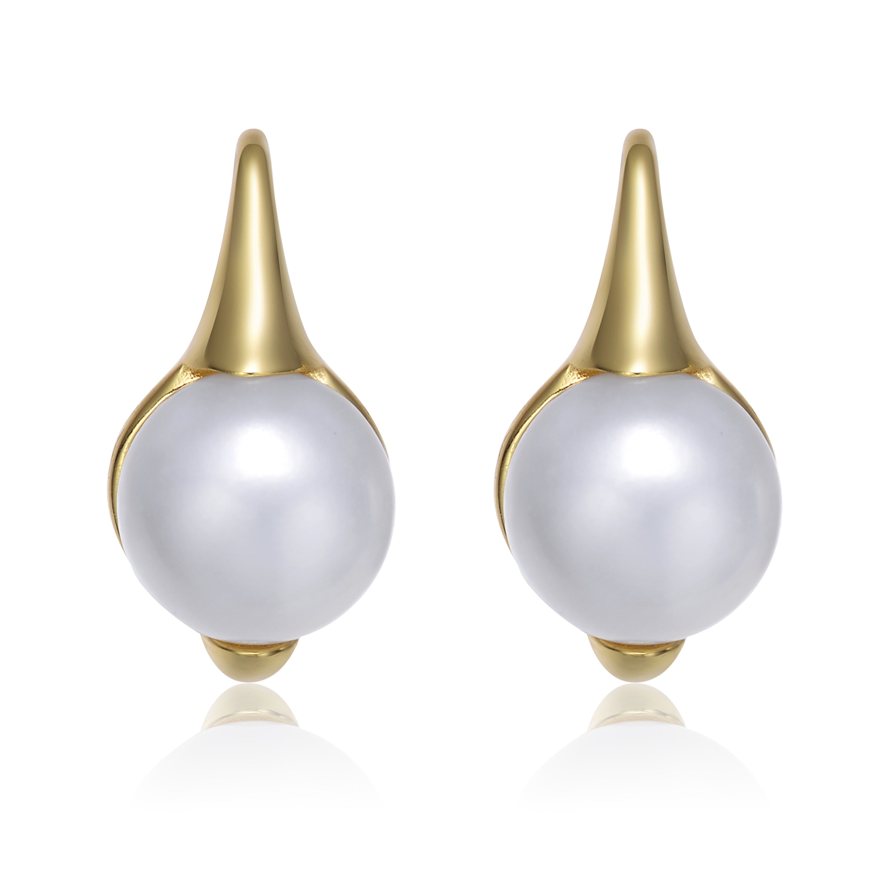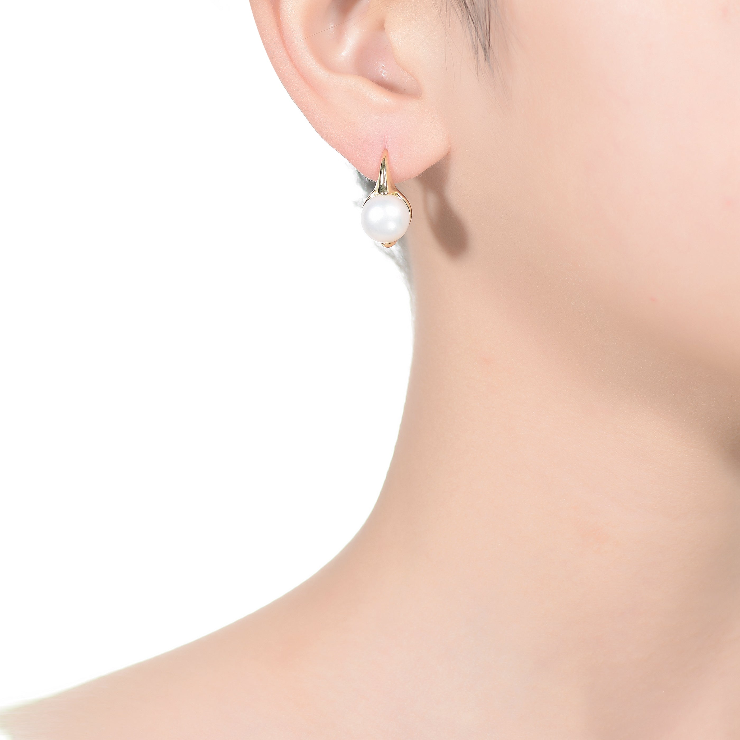 Very elegant .925 Sterling silver gold plated with freshwater lever back earrings. These earrings feature simple round freshwater pearl set on the metal frame. Crafted in .925 Sterling silver with gold plating and it is secured with lever back closure. This item is a perfect to go piece of jewelry. Makes a great gift as well.
