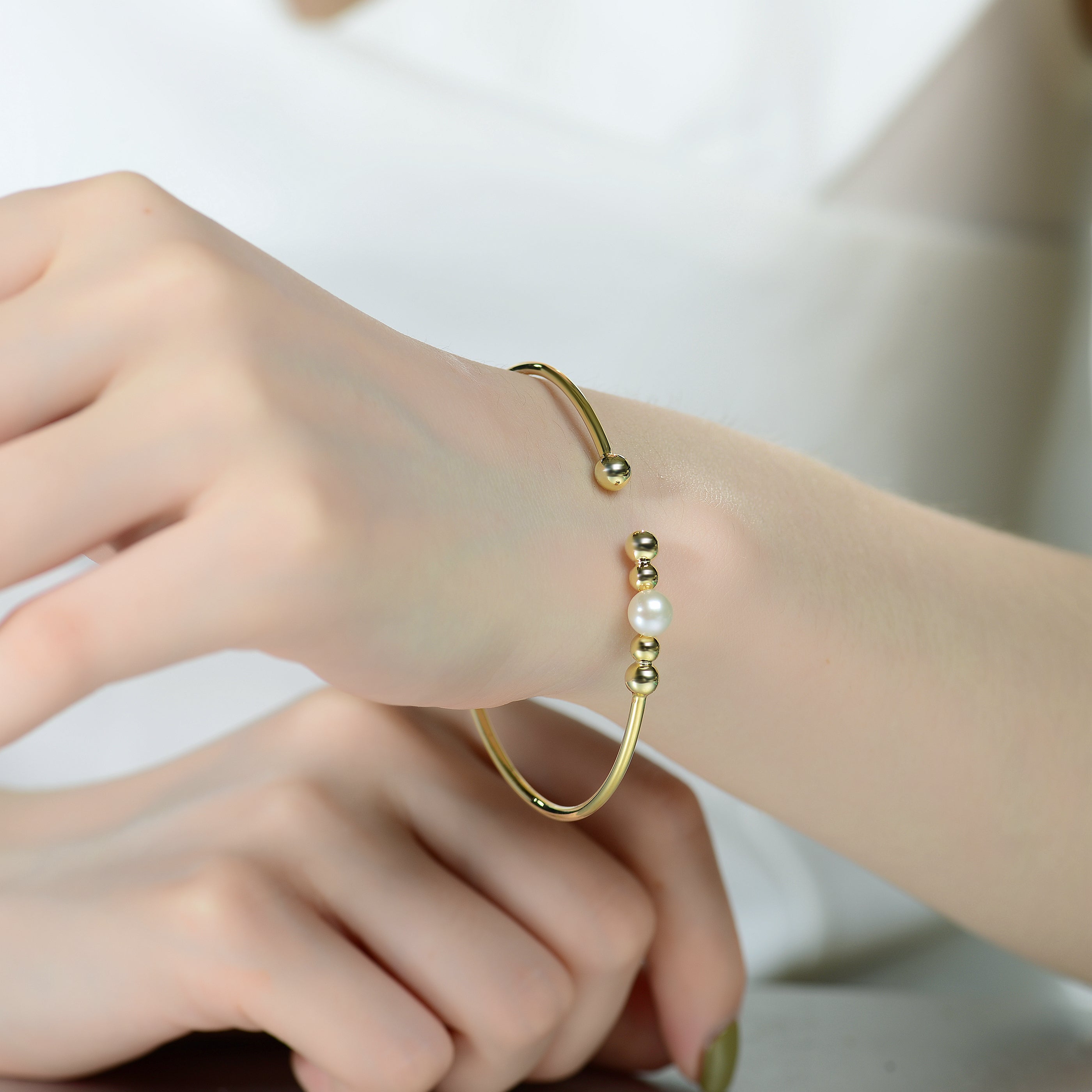 Delphine Pearl Golden Shpere Bracelet