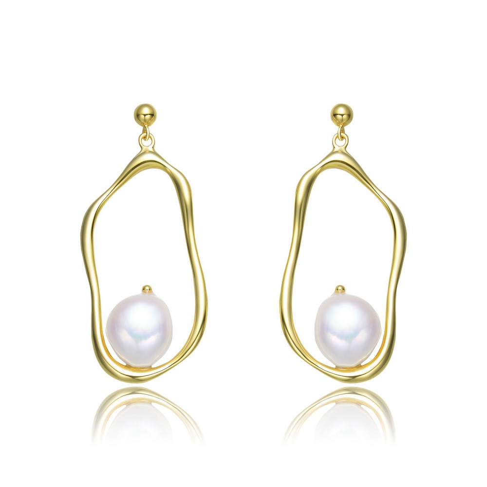 Brigitte Double Golden Ribbon Maxi Pearl Earring