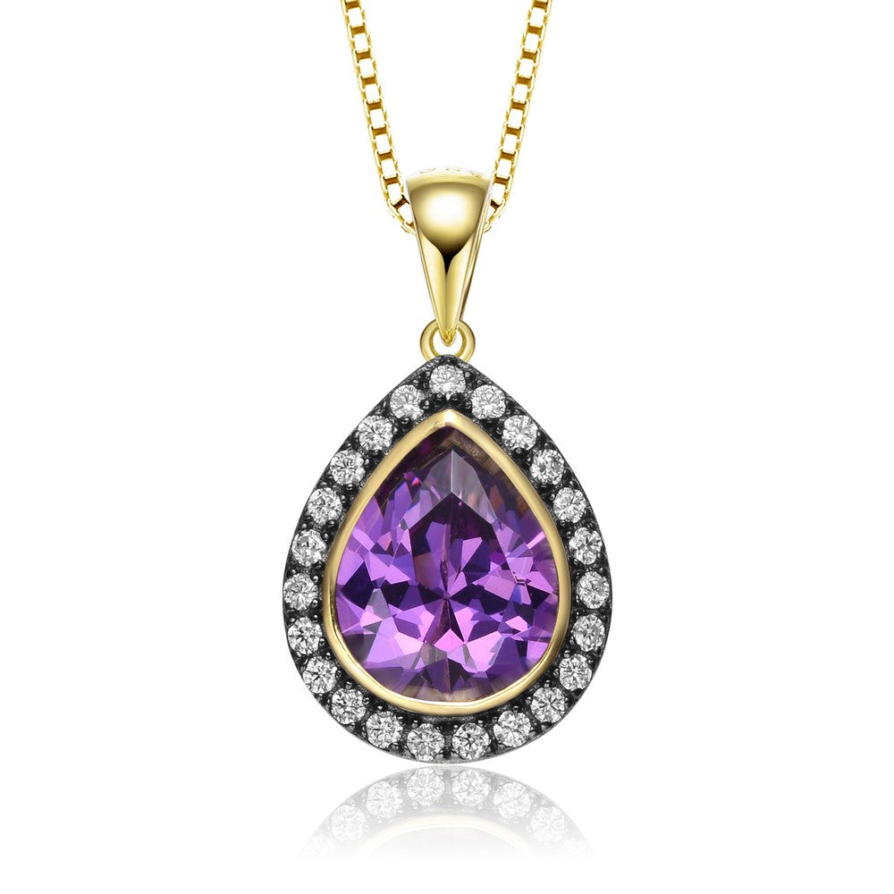 14k Gold Plated Teardrop Shaped Purple Cubic Zirconia Pendant Necklace