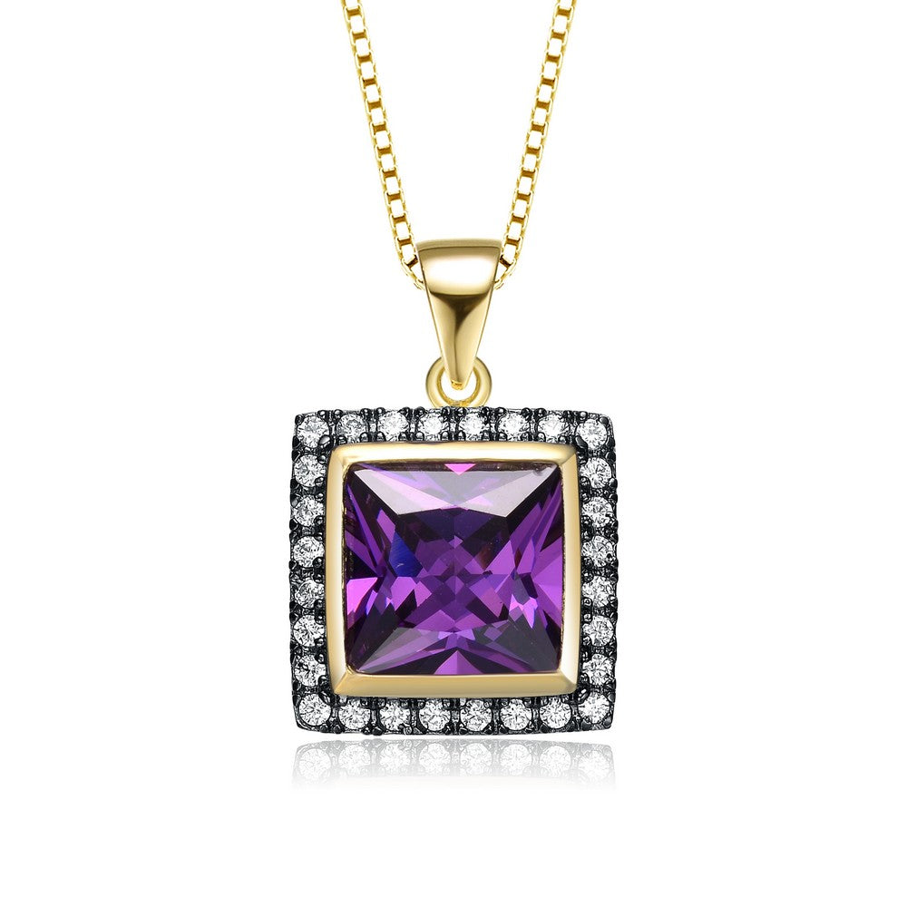 Be prepared to wow the crowd when showcasing this .925 Sterling silver necklace. It boasts a large square purple cubic zirconia solitaire surrounded by clear cubic zirconia.