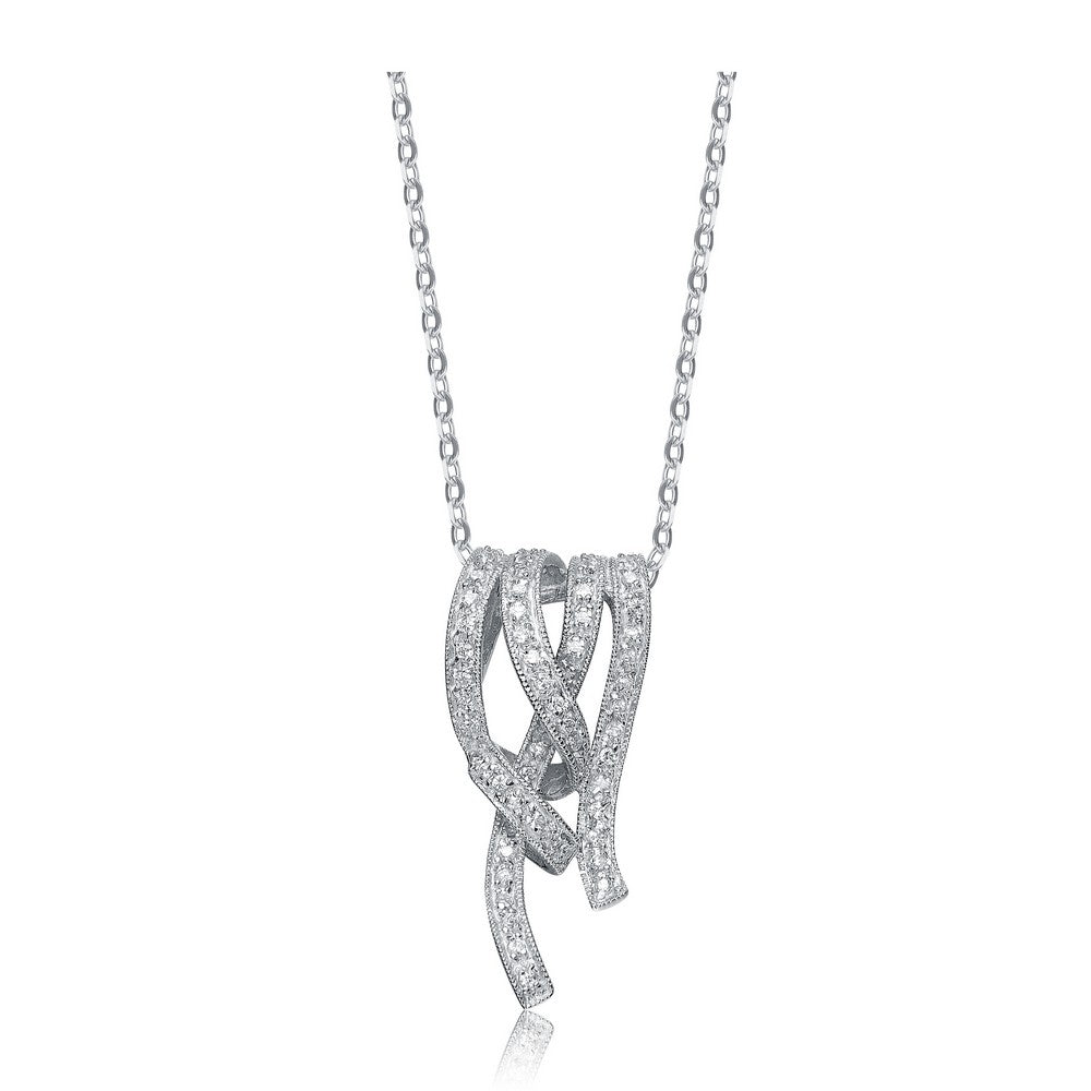 Unique in its design, this pendant resembles an intertwining ribbon that falls with natural grace. Made of brilliant small white cubic zirconia and laid in .925 Sterling silver, this pendant adds a touch of style to your outfit.
