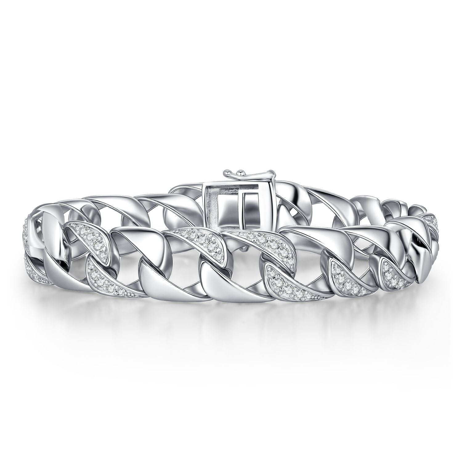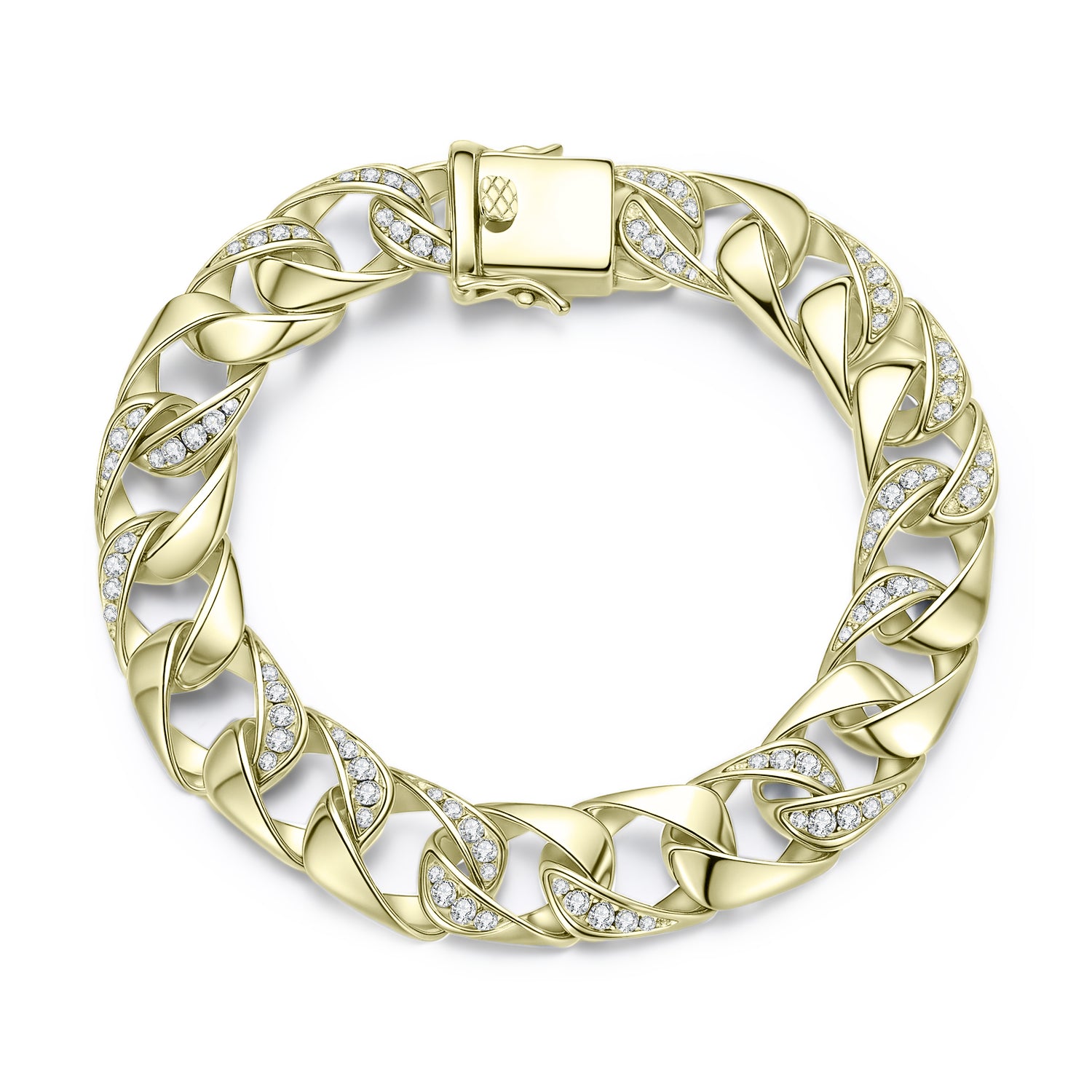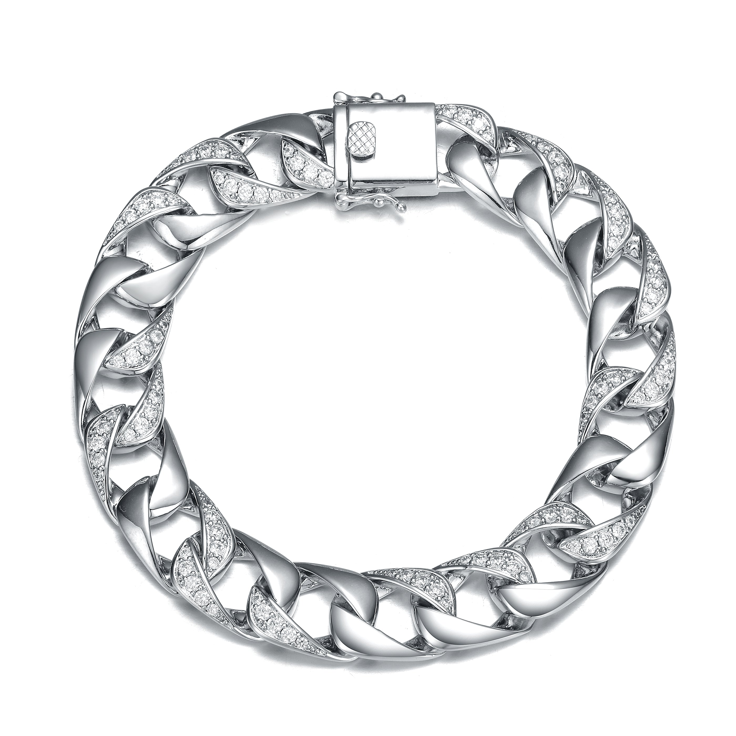 Elevate your everyday look with this bold Miami Cuban chain bracelet, adorned with diamond-like cubic zirconia for a striking finish. Expertly crafted in sterling silver, this piece is available in both Rhodium and Gold-plated options. A secure hidden clasp completes the design, making it perfect for stacking or wearing on its own.