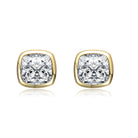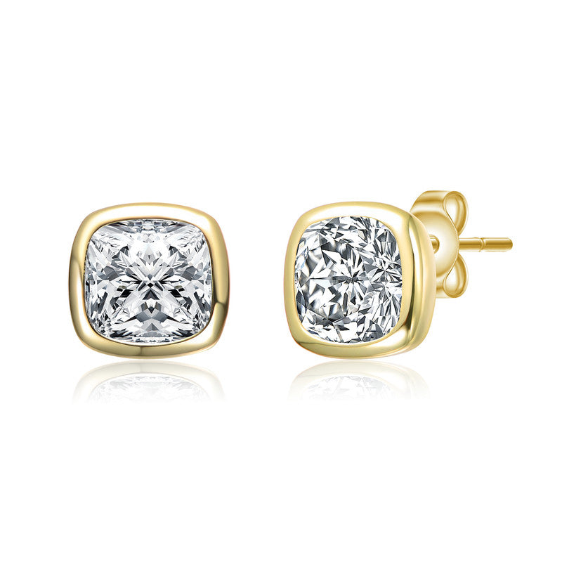 These stud earrings combine classic elegance with secure, sparkling design. Each earring features a brilliant clear cubic zirconia encased in a smooth bezel setting, set atop sterling silver and finished with radiant 14K yellow gold plating. Designed for both everyday sophistication and special occasions, they offer comfort, durability, and a refined touch of sparkle. Ideal as a thoughtful gift or a personal indulgence, these earrings are a timeless addition to any jewelry collection.
