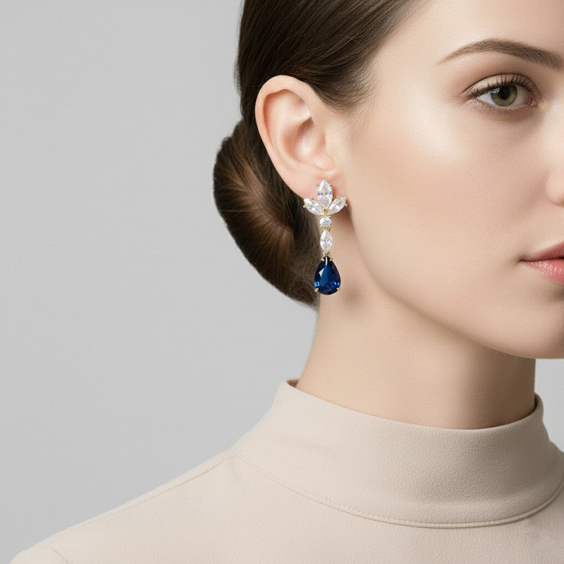 Estelle Blue & White Cluster Dangle Earrings