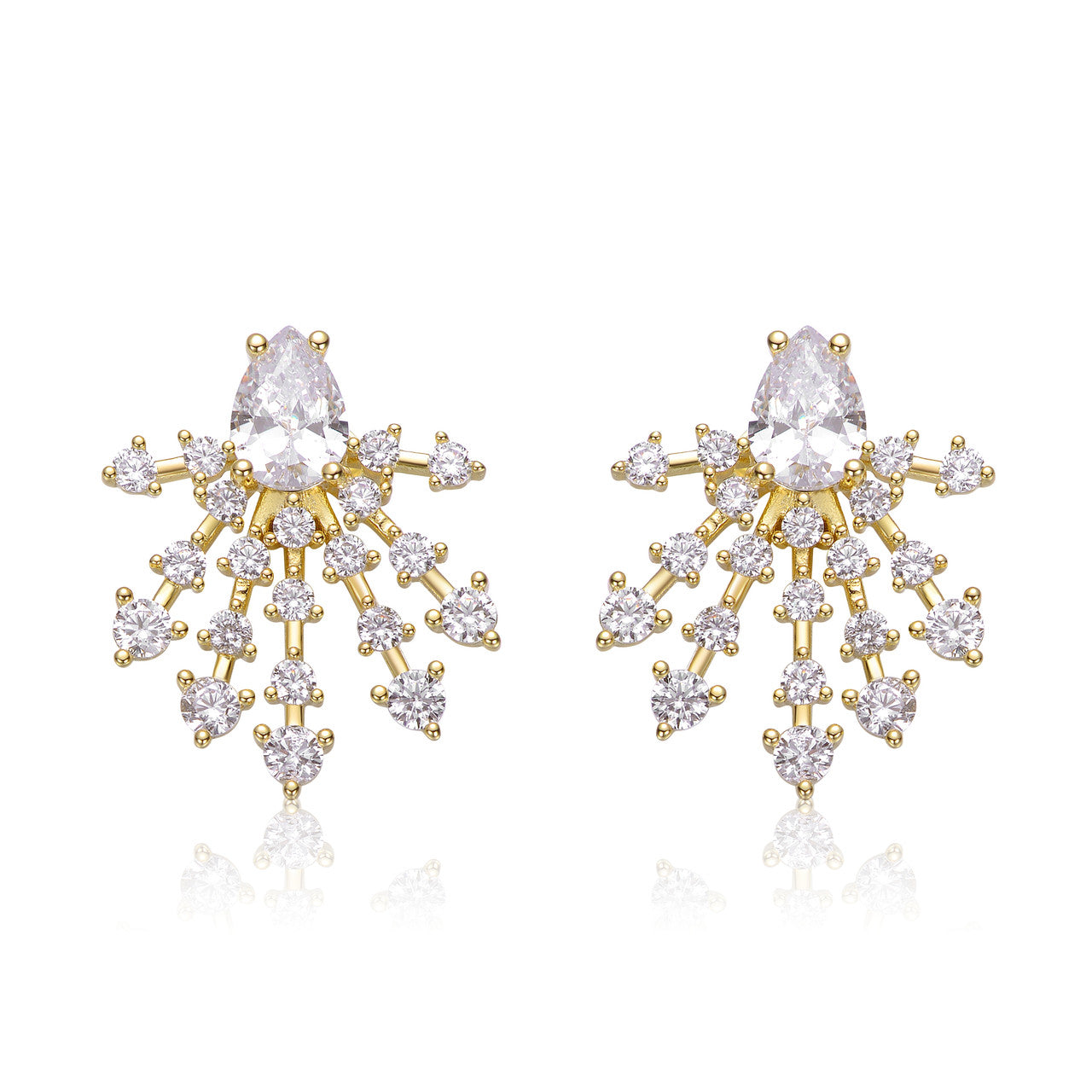 Inspired by the delicate beauty of winter, these snowflake cluster earrings deliver radiant sparkle with a refined, modern edge. Brilliant cubic zirconia stones are arranged in an elegant linear formation that creates a graceful half-snowflake silhouette, designed to catch the light from every angle. Finished with a luminous gold-plated glow, these earrings offer timeless charm and versatility, making them an effortlessly elegant choice for year-round wear.