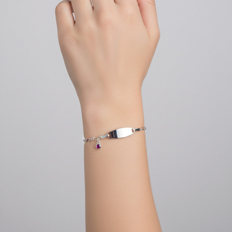 This chic minimalist bracelet features a sleek polished bar accented by a round bezel-set cubic zirconia charm for refined sparkle. Designed with clean lines and modern simplicity, it offers effortless versatility for everyday styling. Crafted in sterling silver and finished in your choice of luminous rhodium or warm 14K gold plating, it delivers both durability and elegance. Wear it alone for a subtle statement or layer it with your favorite pieces for a personalized look.