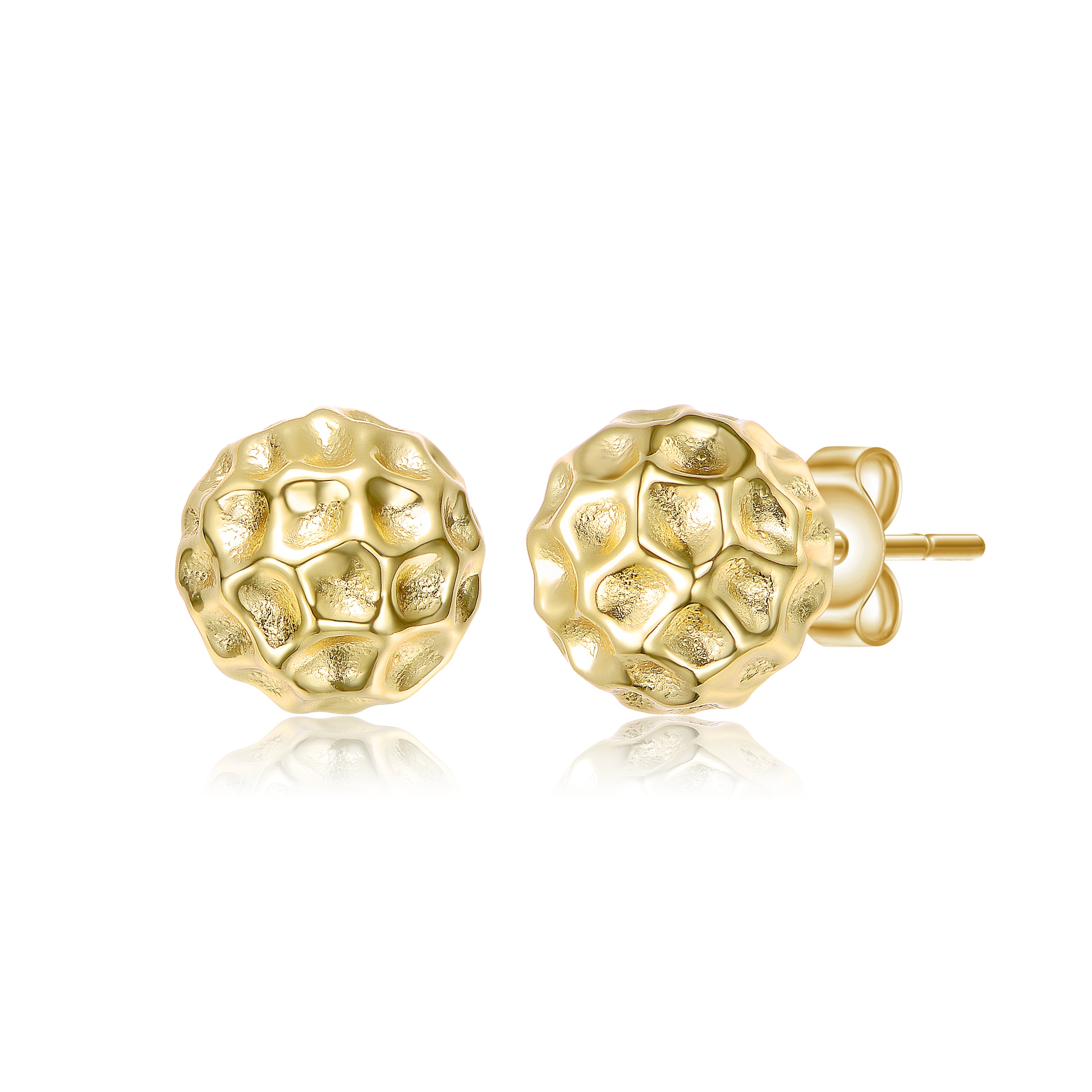 Sterling Silver 14K Gold Plated Honeycomb Textured Stud Earrings. These beautiful 14K gold-plated stud earrings radiate warmth and brilliance, featuring a captivating honeycomb texture that catches the light with every turn. Their spherical silhouette offers timeless elegance, while the faceted surface adds a modern twist. Lightweight and versatile, theyβre perfect for daily wear or special occasions. Secured with classic butterfly backings, these studs blend comfort with sophistication-an effortless way to elevate your look.