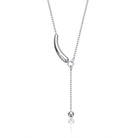 This elegant Y-necklace showcases a refined curved bar that gently follows the neckline for a modern, graceful silhouette. A delicate drop chain extends below, finished with a polished bead that adds subtle movement and shine. The white gold plated finish enhances its luminous appeal, making it effortlessly versatile for day or evening wear. Its clean, minimalist aesthetic allows it to pair beautifully with layered looks or stand alone as a delicate statement. Designed with timeless simplicity, this necklace brings contemporary sophistication to any jewelry collection.