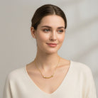 This charming kids necklace features a sleek chain design highlighted by two horizontal bar accents for a modern, polished look. The smooth 14K gold plated finish offers a radiant shine that complements both everyday outfits and special occasion attire. Designed with lightweight comfort in mind, it sits gracefully along the neckline without feeling heavy. The adjustable extender provides flexibility for growing children, ensuring a perfect fit. Stylish yet age-appropriate, this necklace makes a thoughtful gift and a timeless addition to any young jewelry collection.