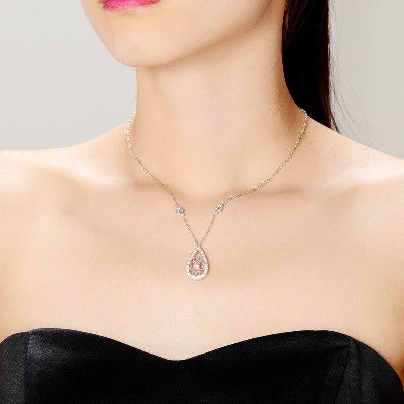 - Intricate teardrop and heart motif pendant design