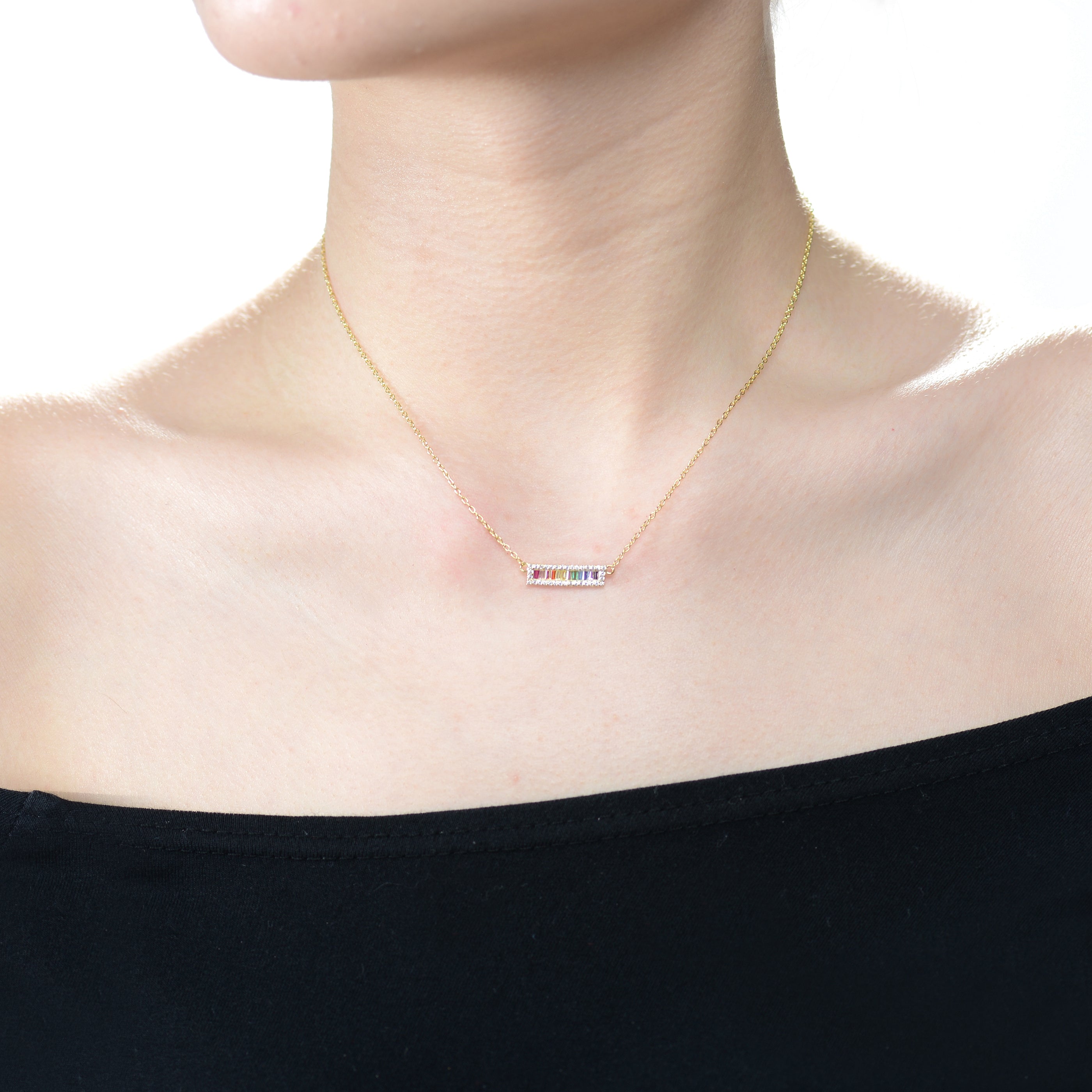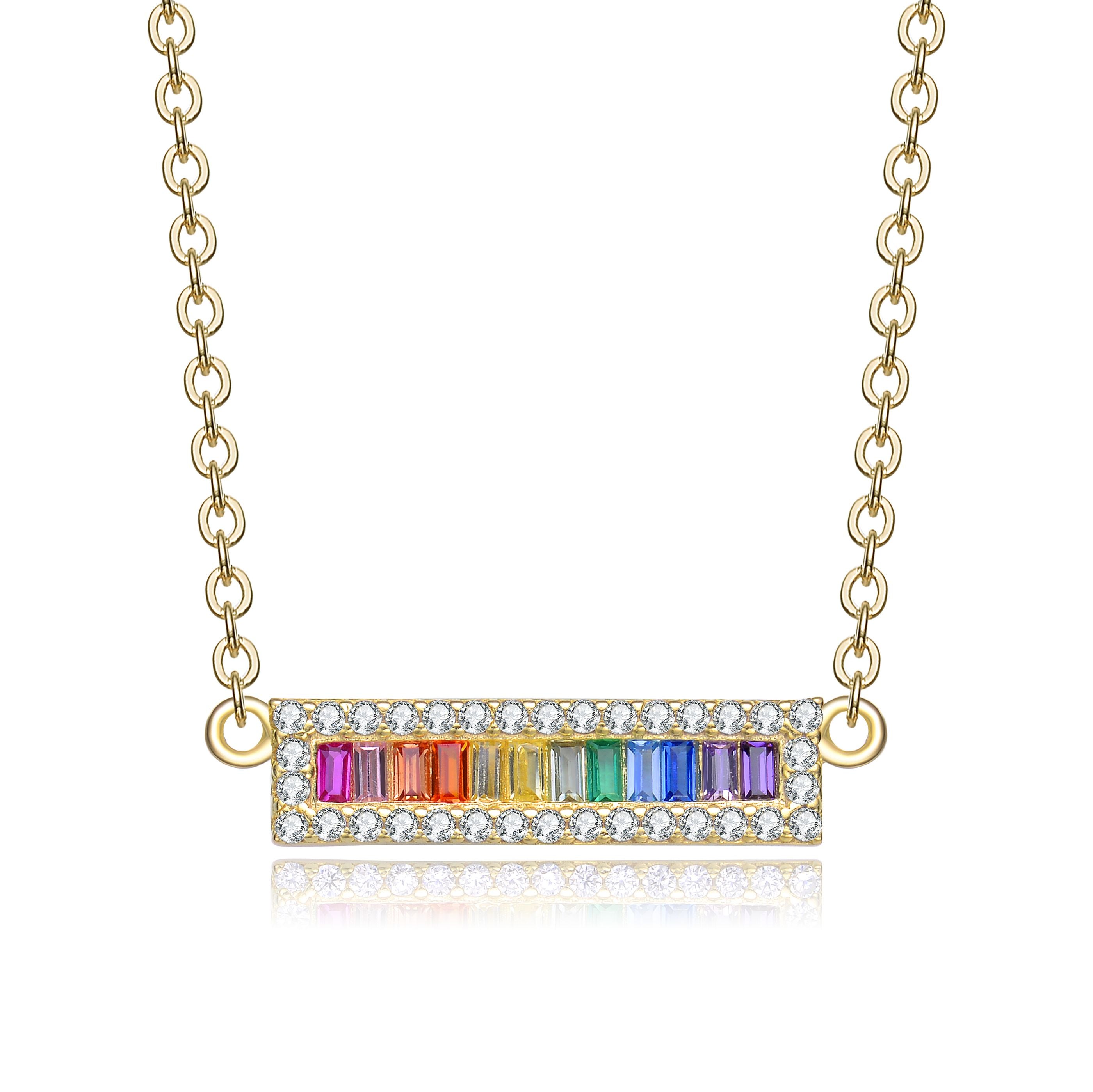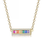 Sterling Silver Rainbow Cubic Zirconia Bar Pendant Necklace