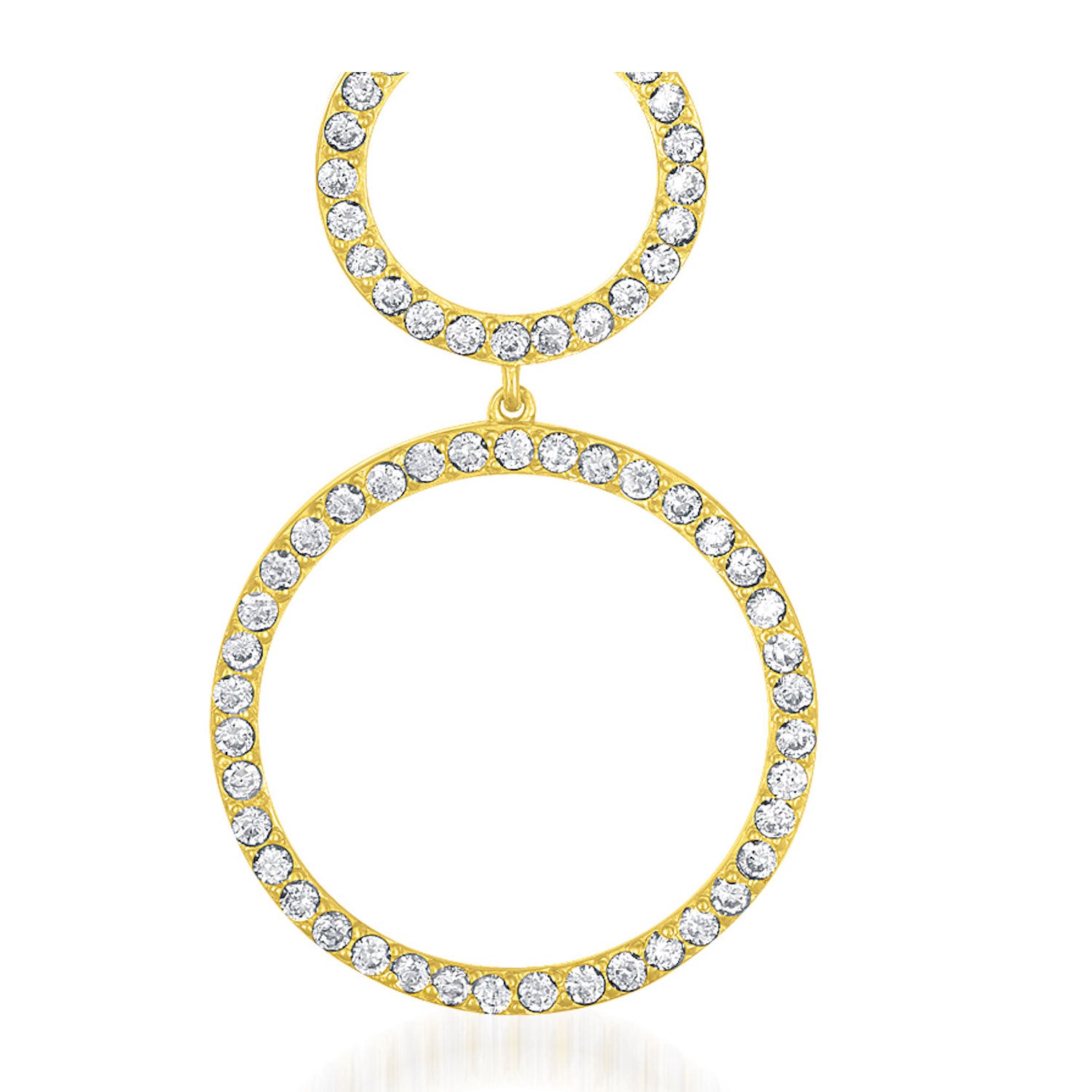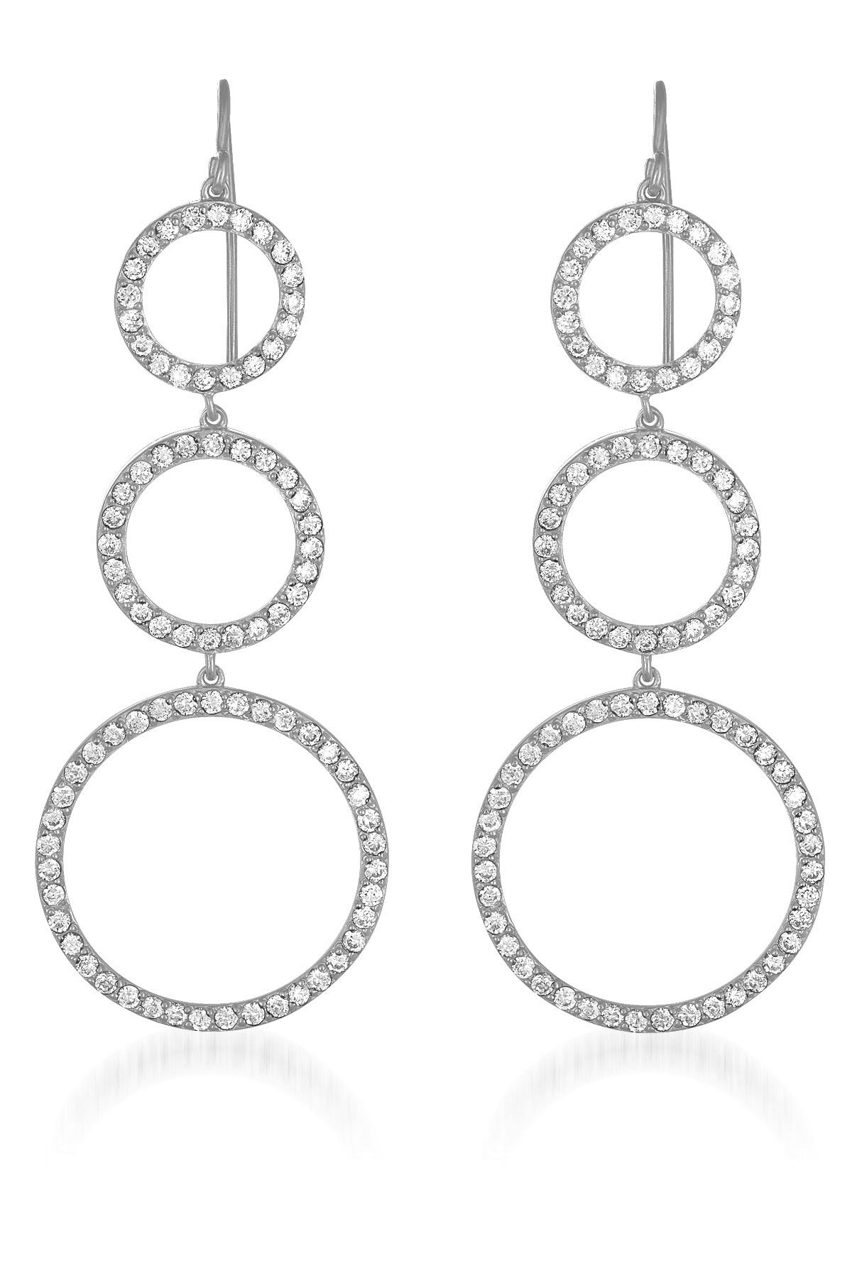 Dramatic and simple is the name of the game with these graduating circle design earrings. They feature sterling silver circles encrusted with white cubic zirconia stones.
