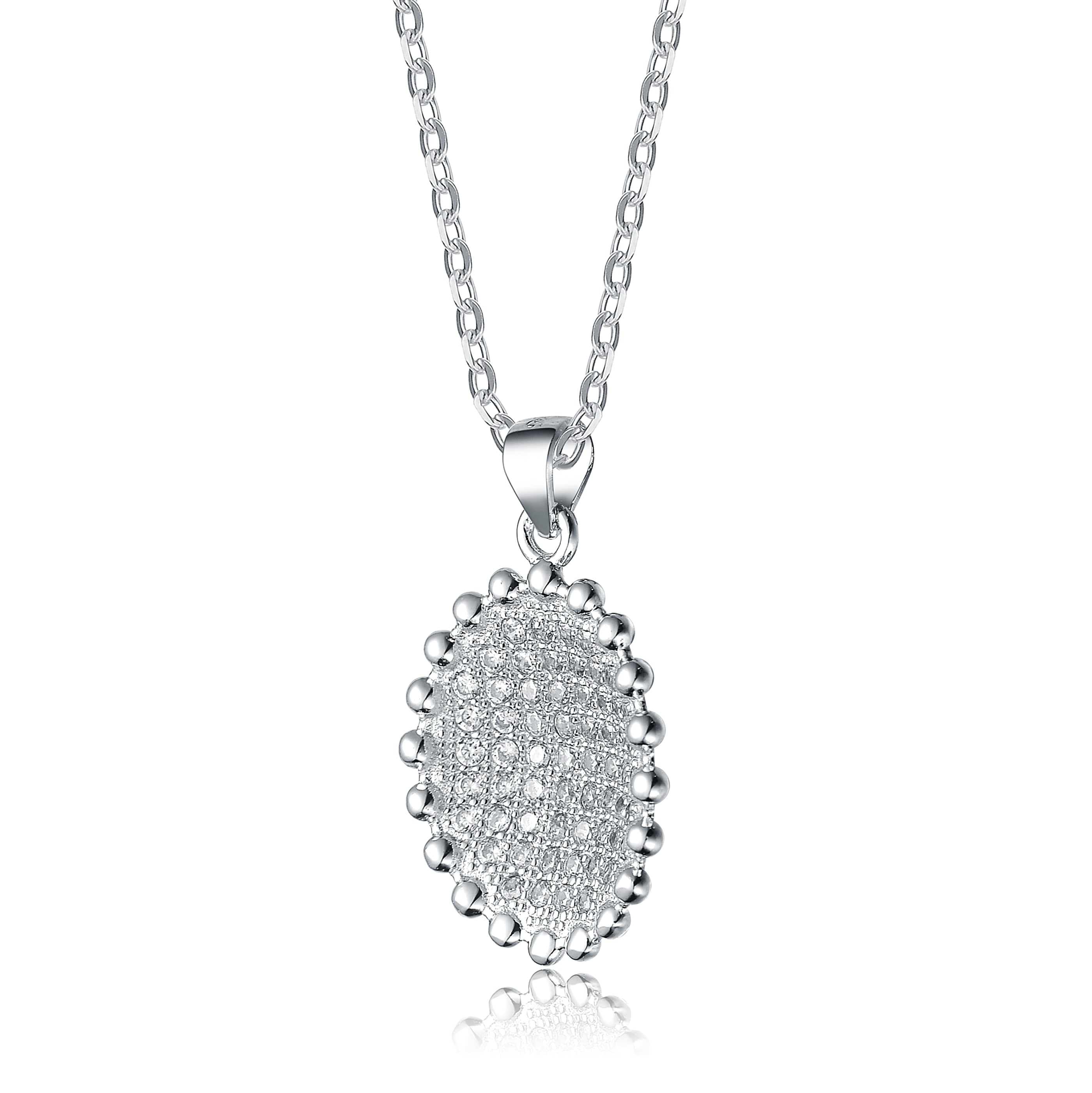 Elegant and refined, this sterling silver pendant adds a graceful finishing touch to any look. Delicately accented with shimmering cubic zirconia stones, the design offers subtle sparkle and timeless appeal, making it perfect for both everyday wear and special occasions.