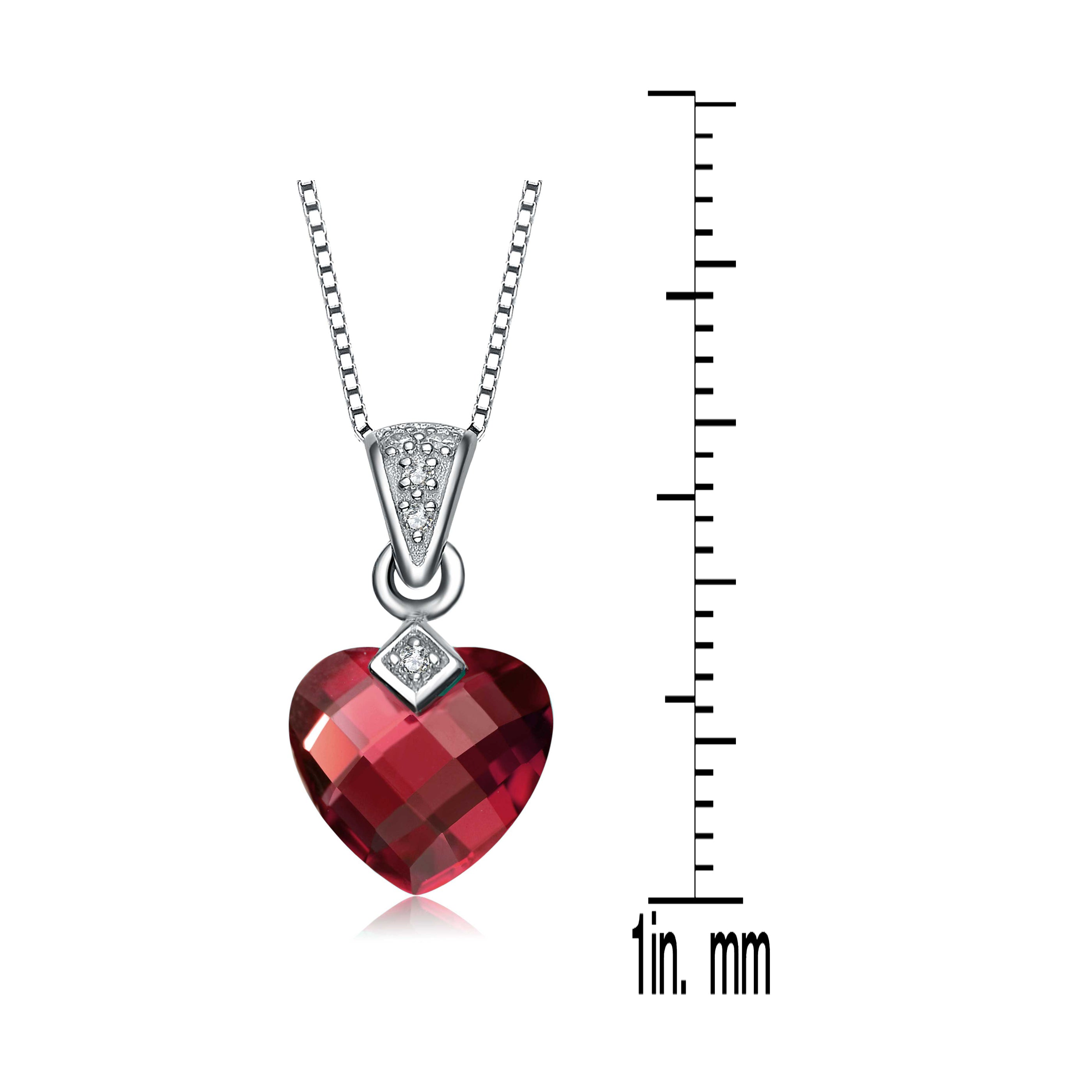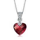 This enchanting .925 Sterling silver necklace has a large dark blue cubic zirconia stone shaped like a heart; this huge stone is attached to a large silver clasp using a diamond-shaped, intricately-designed silver piece. The clasp also has its fair share of attention with a detailed silver design. Available in Sapphire.