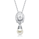 With a unique pattern and eye-catching crystals, this design will glamorously complete any elegant ensemble. Crafted from shining .925 Sterling silver a series of shapes are artfully adorned with sparkling cz and a luminous freshwater pearl.
