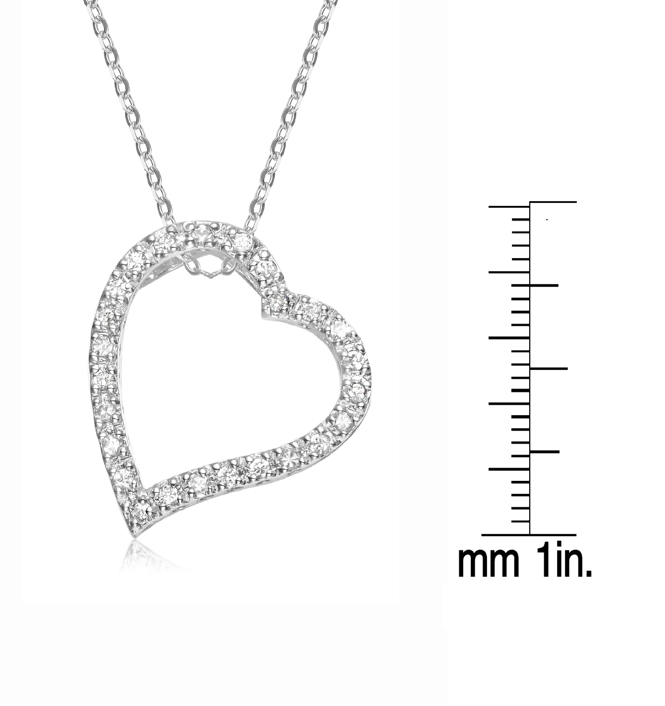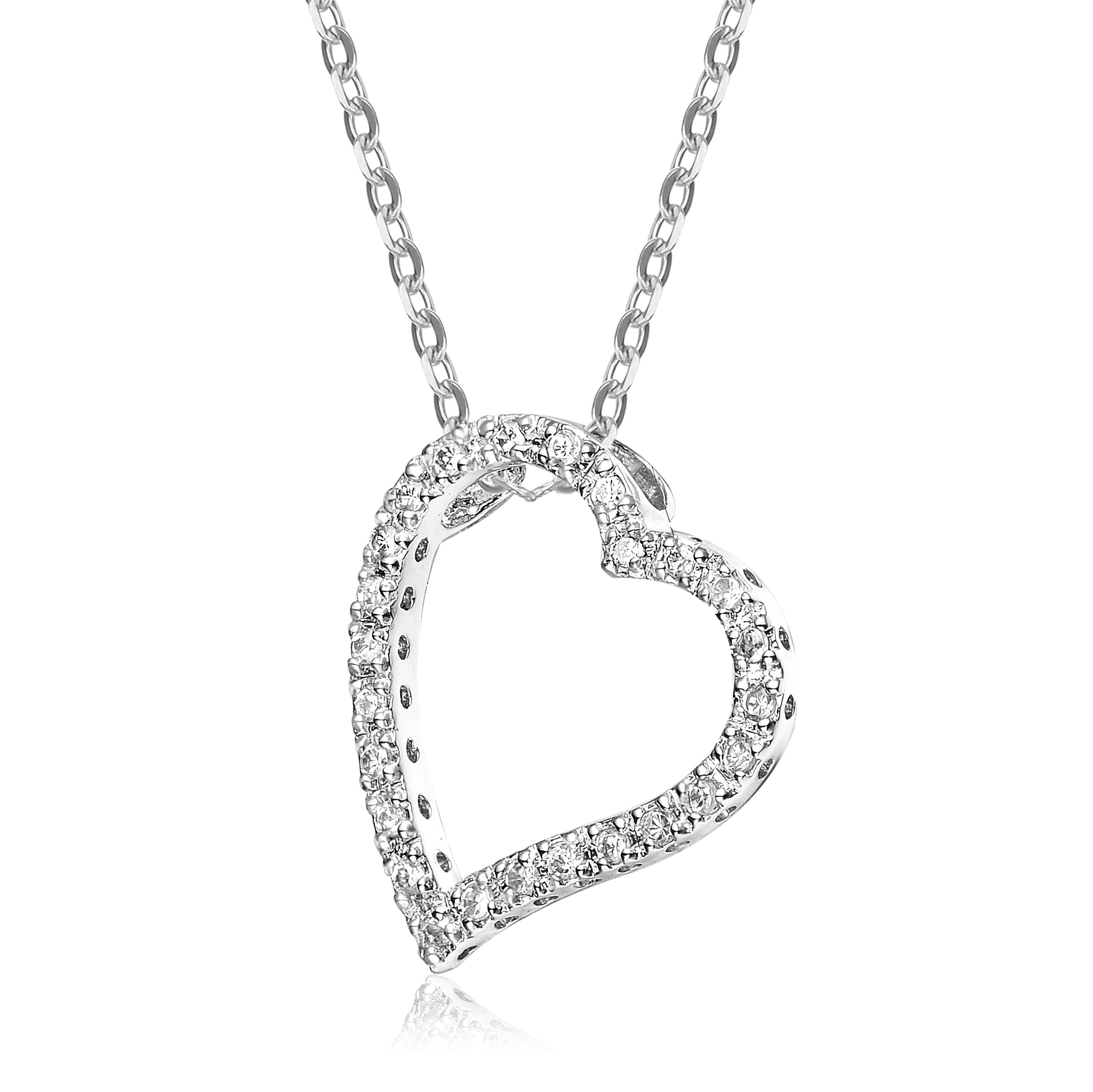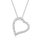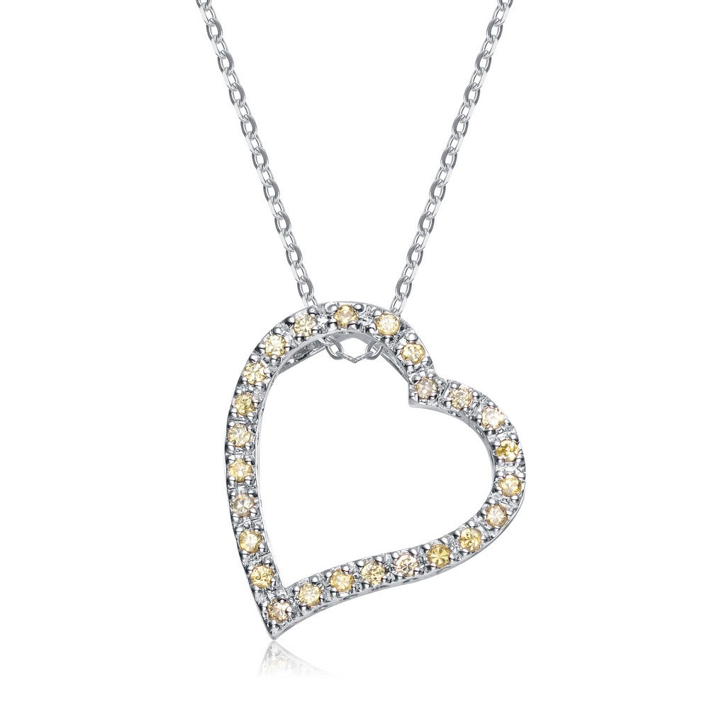 A simple heart outline, this pendant boasts of yellow and white cubic zirconia set in .925 Sterling silver. This necklace dangles from a delicate .925 Sterling silver chain and comes at a very affordable price. Also available in white cubic zirconia.