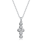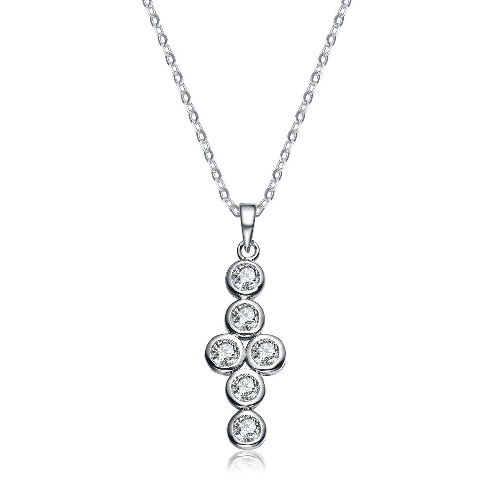 A set of stunning white cubic zirconia rest in circles of .925 Sterling silver which exude charm and contemporary elegance. Simple yet fashionable, this necklace comes at a very affordable price and accentuates your beauty.