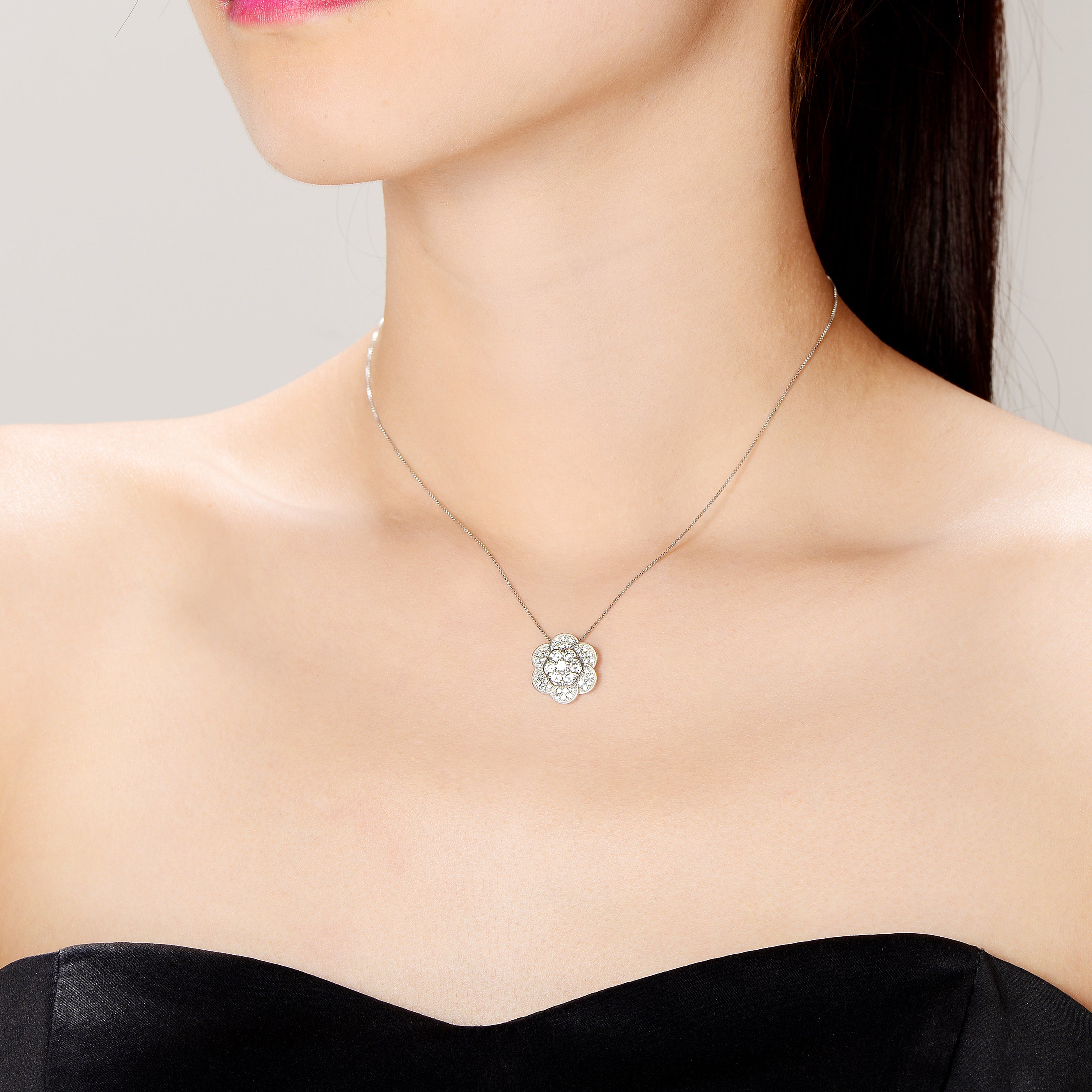 This amazing .925 Sterling silver pendant has a very intricate design from the six petals to the center of the flower design. Small cubic zirconia stones are all over this flower pendant making it a wonderful and dazzling accessory for a simple casual or formal attire.