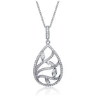 Intricately detailed, this pendant showcases the best of a combination of white cubic zirconia and .925 Sterling silver. This pendant is a teardrop outline with flowing lines through the inner of the design and is very affordable.